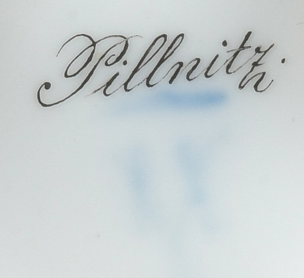 - Katalog-Nr: 852Prunkansichtstasse mit Unterschale. Meissen 19. Jh. Porzellan, mit kobaltblauem Fond, reich gold gehöht; Schauseite der Tasse bunt bemalt und betitelt „Pillnitz“.o.L.