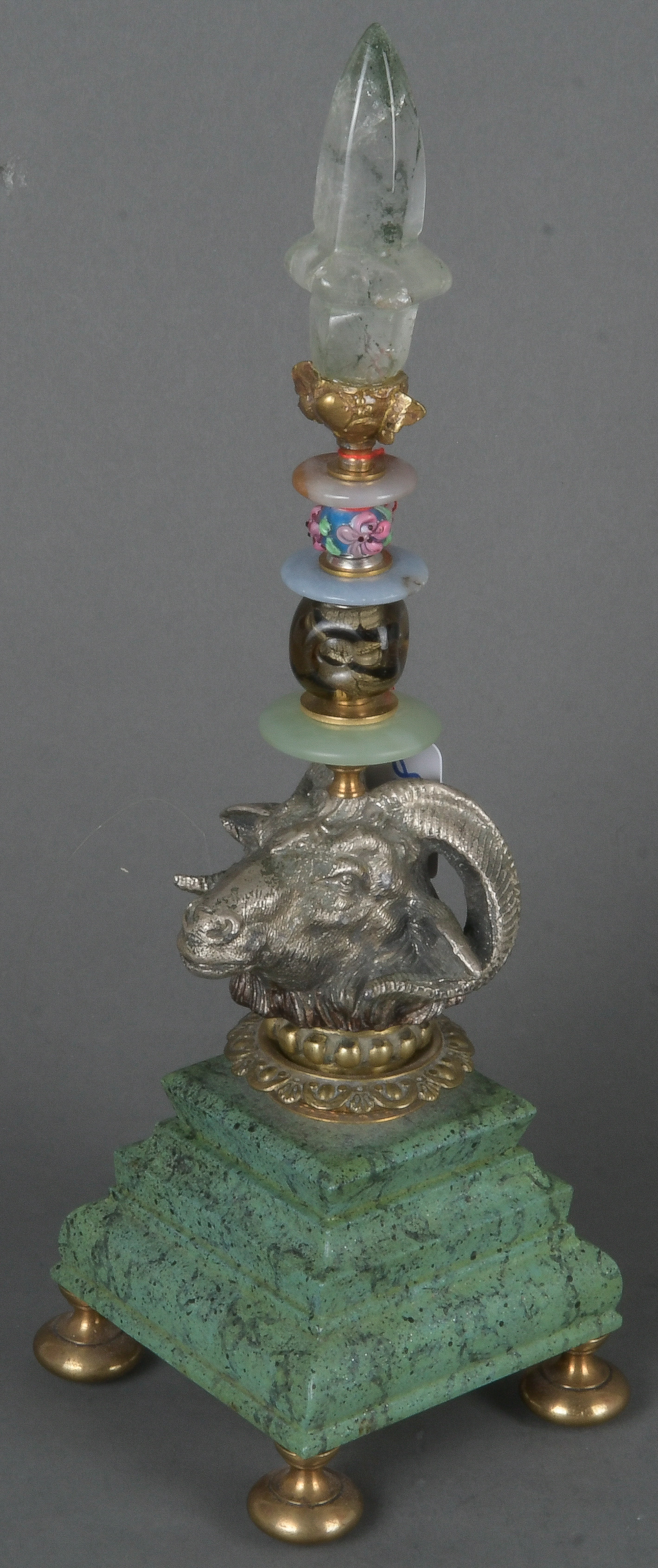 - Katalog-Nr: 885Klaus Dupont (Künstler des 20. Jhs.). Wunderkammer-Objekt in verschiedenen Materialien wie Bronze, Glas, Holz und Messing, a.B. monogr./dat. (20)09, H=31 cm.o.L.