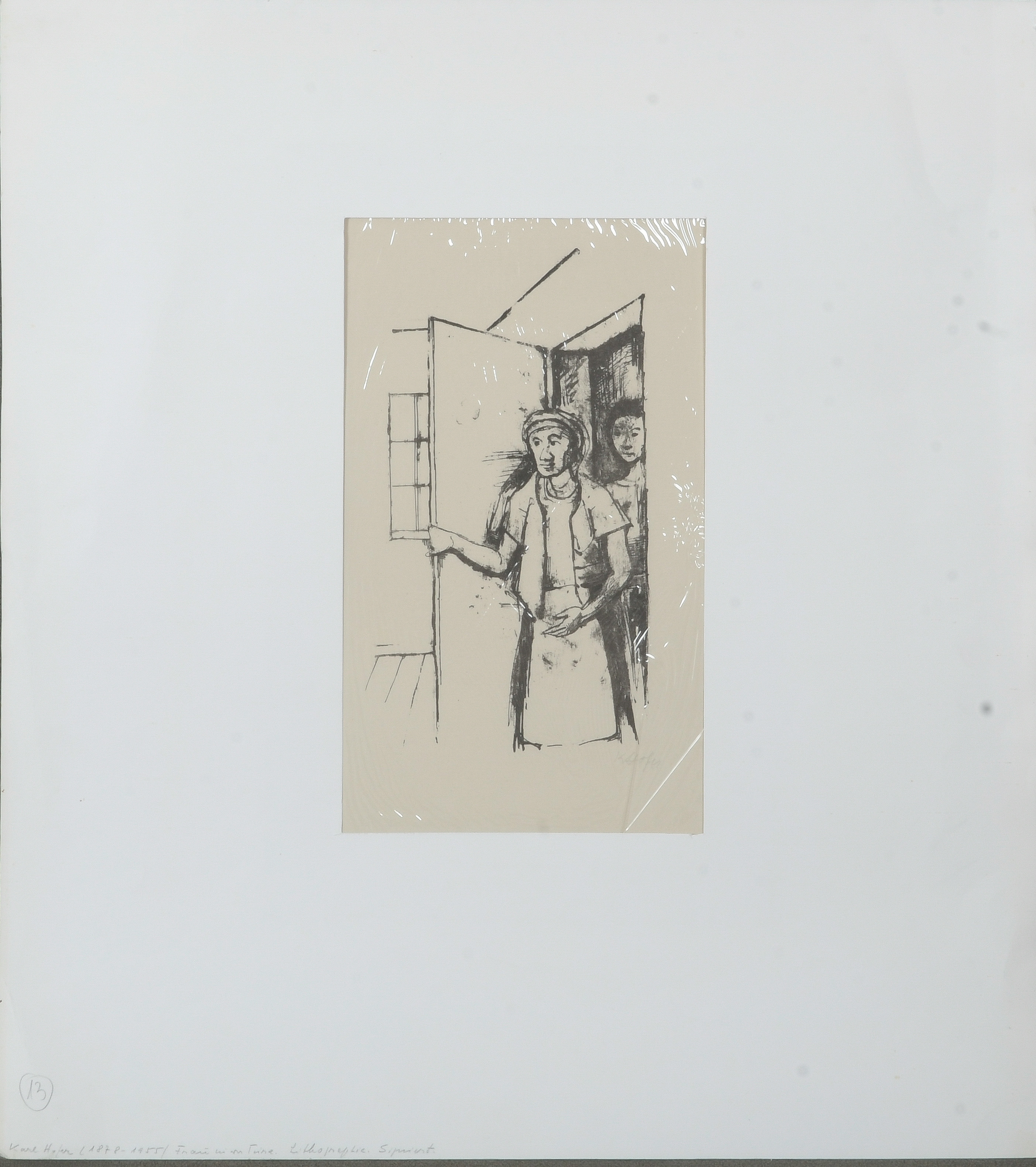 - Katalog-Nr: 929Carl Hofer (1878-1955). „Unter der Türe“. Lithographie, re./u./sign., mit Passepartout, 40 x 23 cm.o.L.
