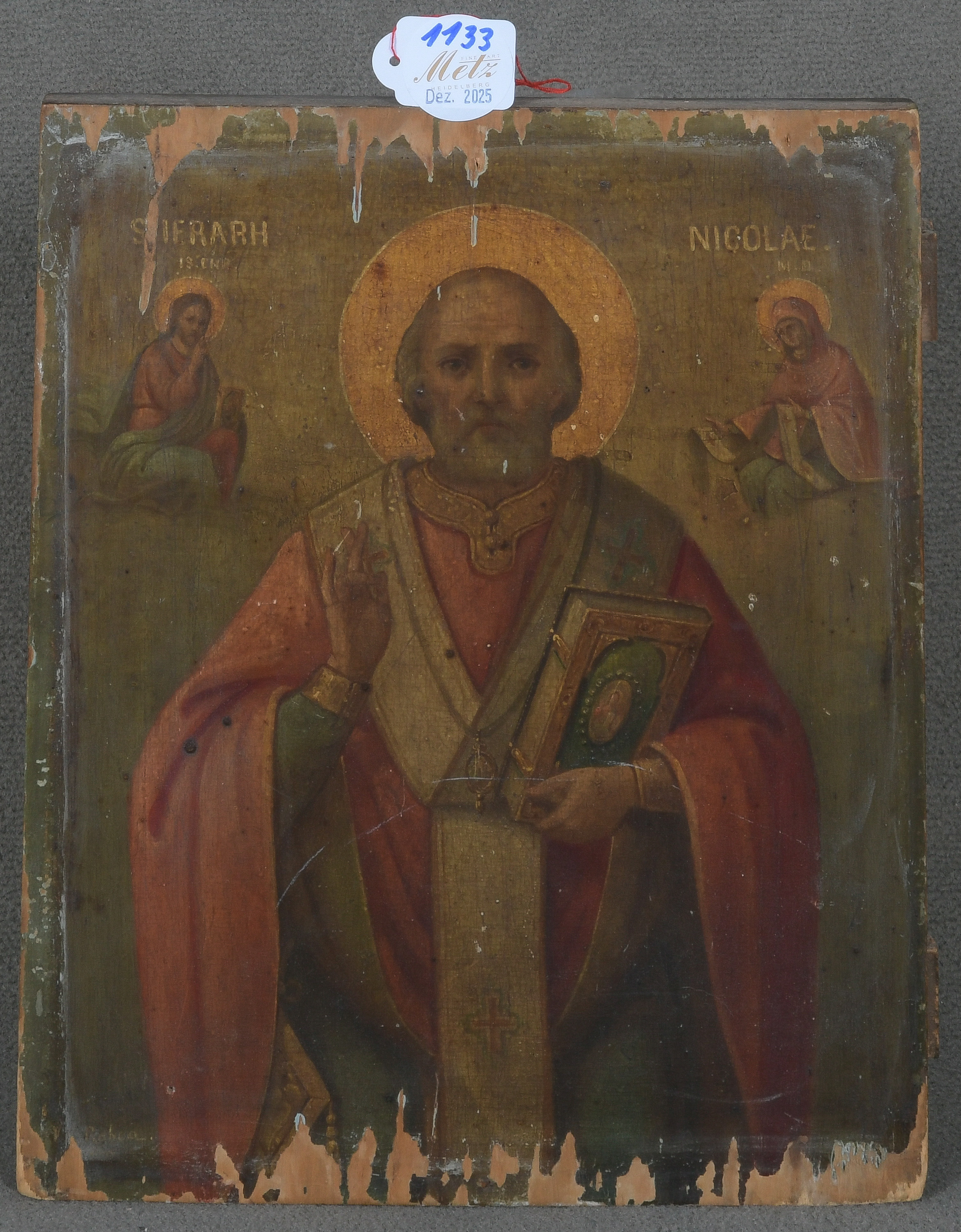- Katalog-Nr: 1133Ikone Hl. Paulus. Russland 19. Jh. Holztafel mit Temperamalerei, 30 x 24 cm. (besch.)o.L.