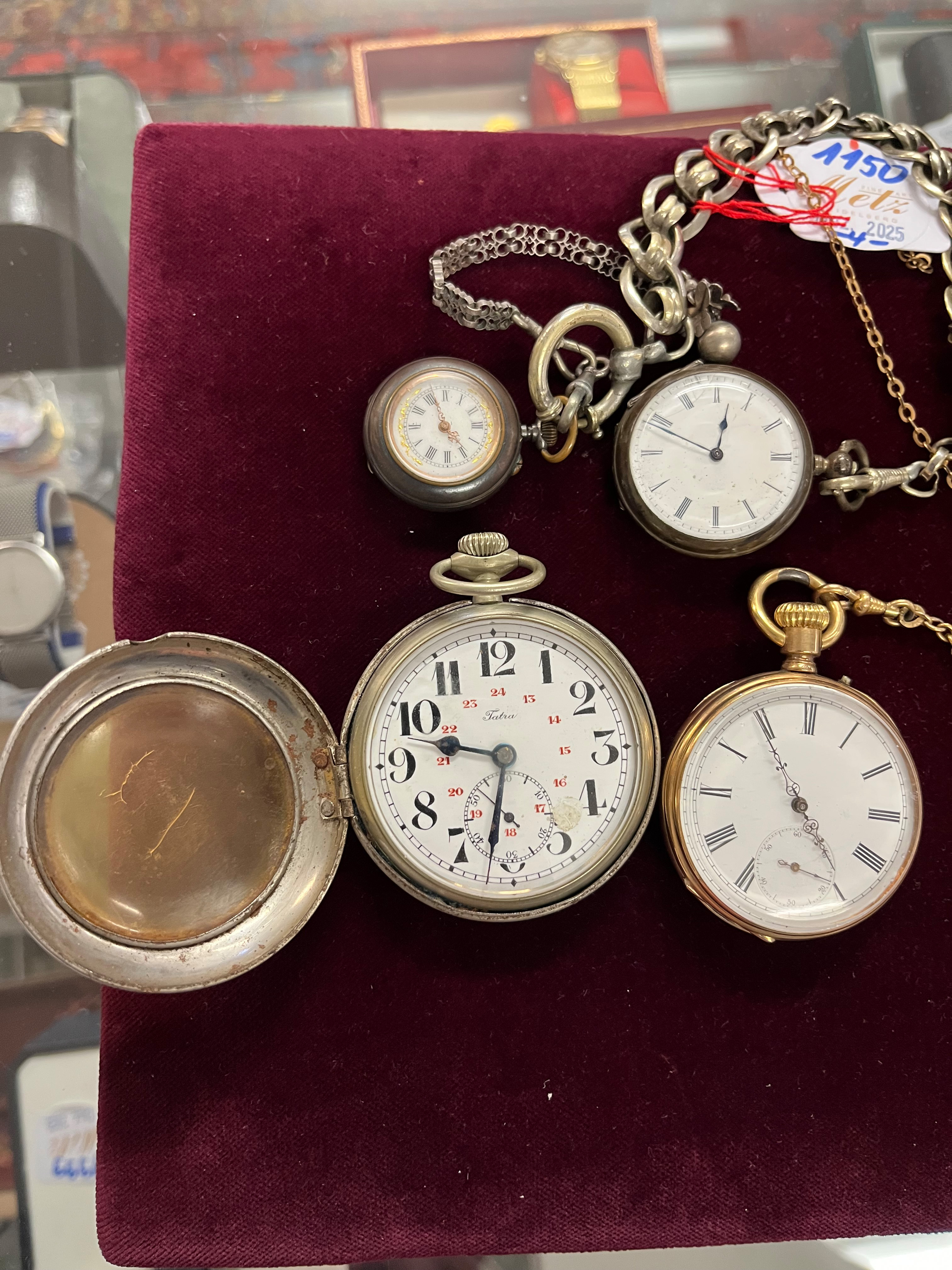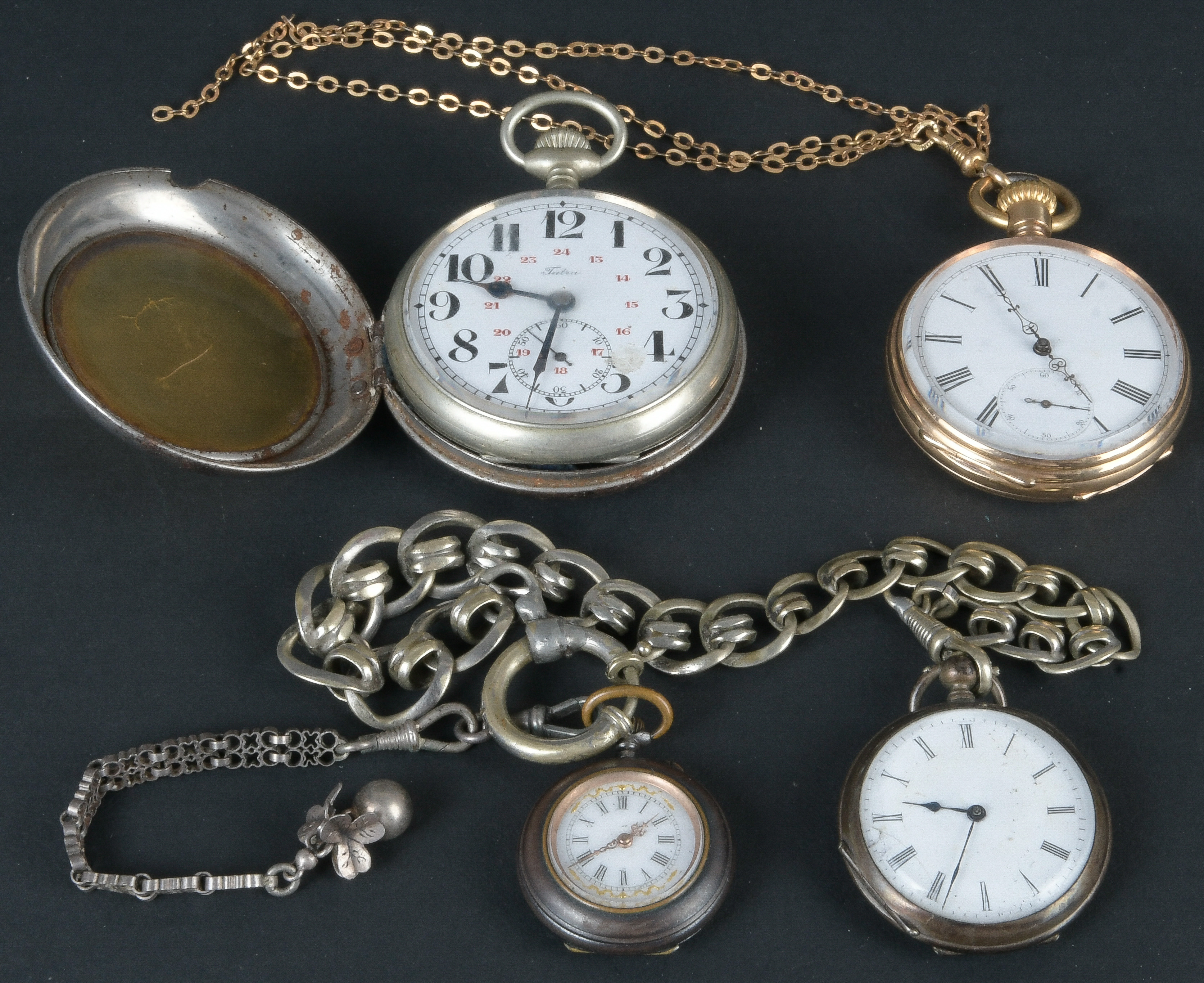 - Katalog-Nr: 1150Vier Taschenuhren. Vergoldet, teilw. mit Kette. (Funktion ungeprüft)o.L.