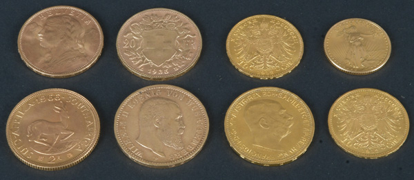 - Katalog-Nr: 1141Acht Goldmünzen, ca. 45,78 g.o.L.