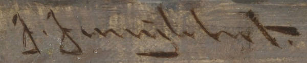 - Katalog-Nr: 1143Johann Jungblut (1860-1912). Fischverkauf am winterlichen Ufer. Öl/Lw., li./u./sign., gerahmt, 33,5 x 44,5 cm.o.L.
