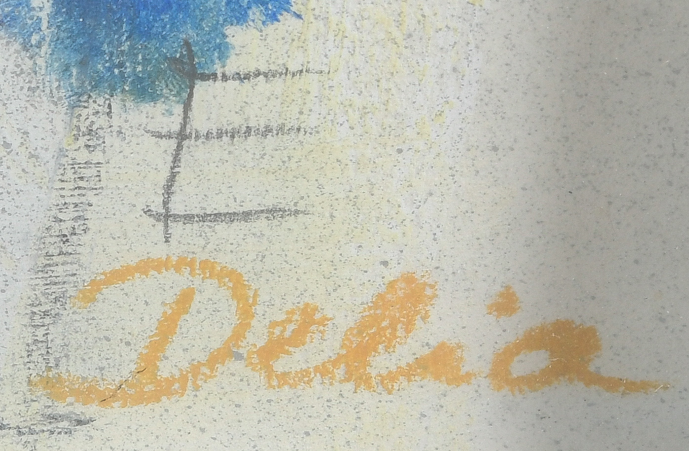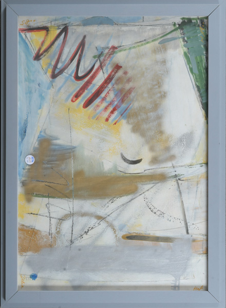 - Katalog-Nr: 1236Delia Haß (Malerin des 20. Jhs.). Abstrakte Komposition. Mischtechnik, re./u./sign./dat. 1985, hi./Gl. gerahmt, 88,5 x 61 cm.o.L.