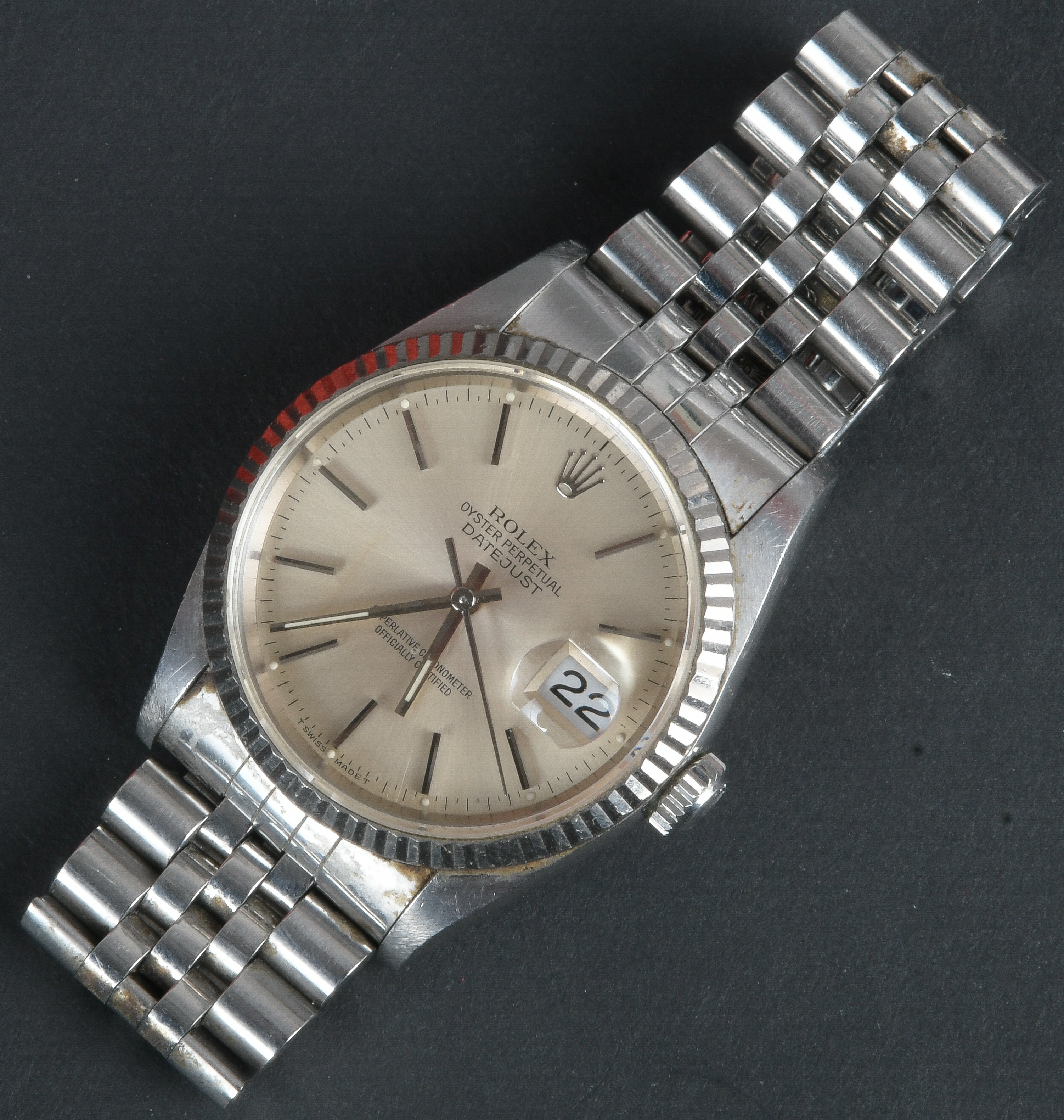 - Katalog-Nr: 1249Herrenarmbanduhr „Rolex-Date-Just". Edelstahl. (Funktion ungeprüft)o.L.
