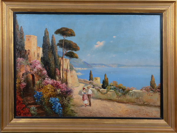 - Katalog-Nr: 1232R. Zinelli (ital. Maler des 19. Jhs.). „Bucht von Sorrent...“. Öl/Lw., re./u./sign., gerahmt (70,5 x 98 cm). Gutachten von Dr. Benno Lehmann vom 12.10.2006 mit Angabe des Verkehrswertes über EUR 1.800,00 bis EUR 2.000,00 liegt zur Ansicht vor.o.L.