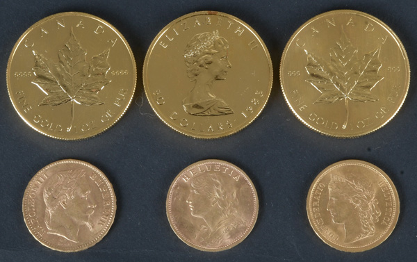 - Katalog-Nr: 1247Sechs Goldmünzen, ca. „112“ g.o.L.