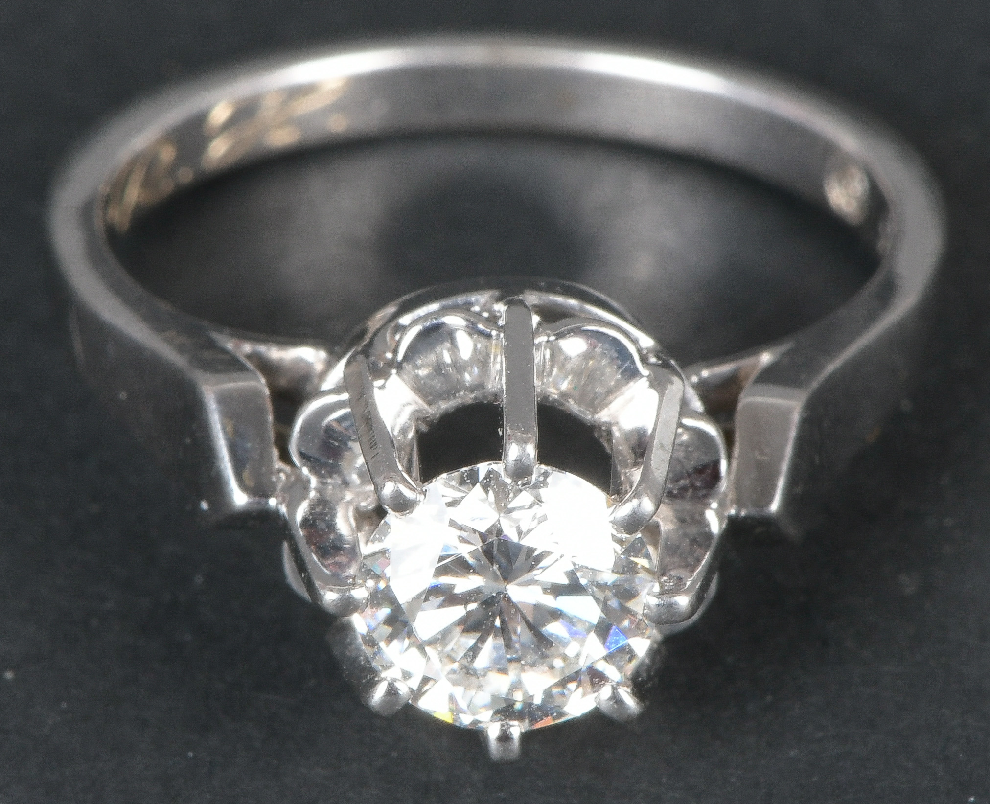 - Katalog-Nr: 1252Solitärring. 18 kt Gold, besetzt mit Brillant, ca. 1,1 ct, Gesamtgewicht ca. 5,3 g, Ringgröße 57.o.L.