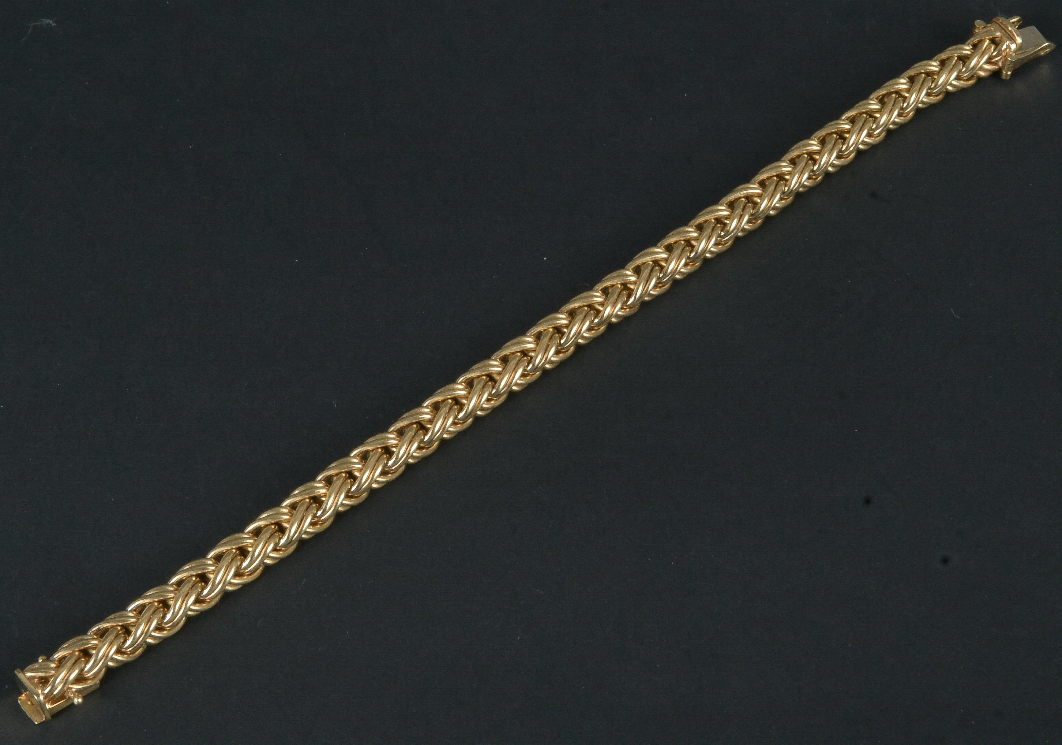 - Katalog-Nr: 1255Zopfarmband. 18 kt Gold, ca. 32 g, L=19 cm.o.L.