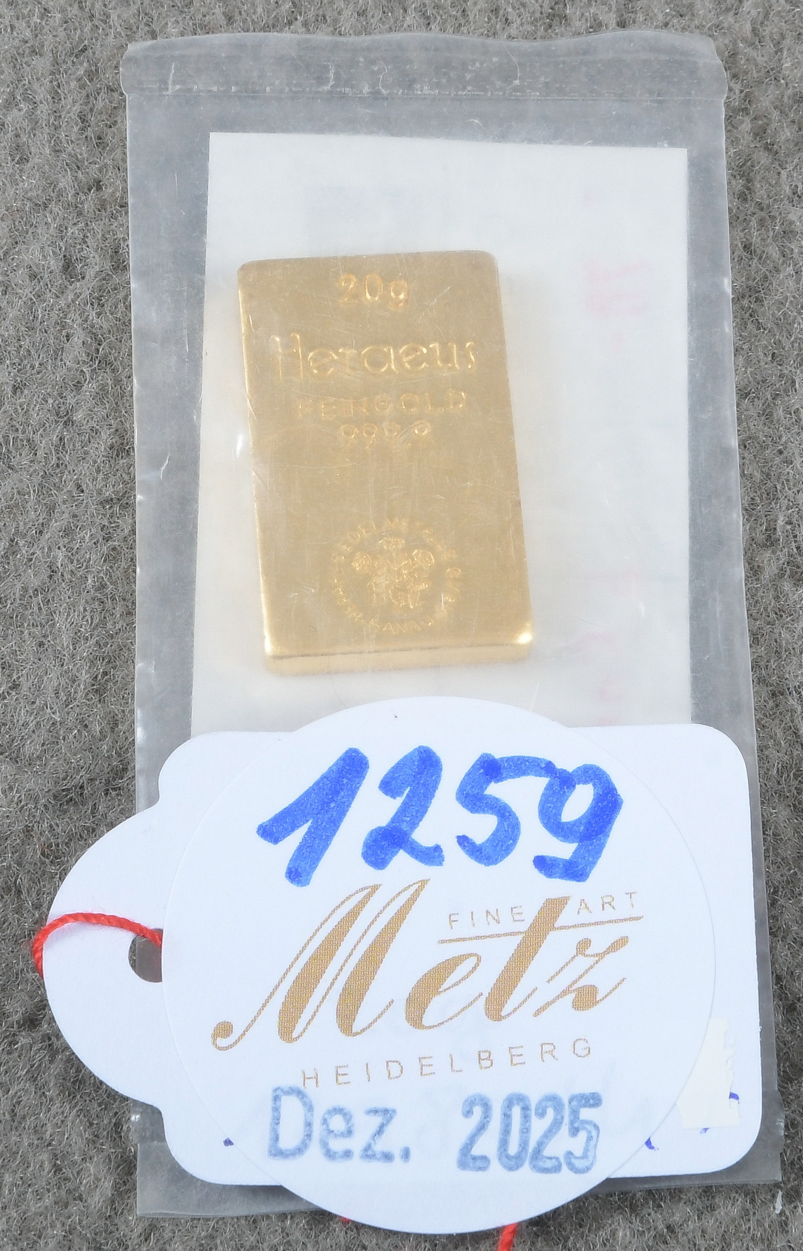 - Katalog-Nr: 1259Feingoldbarren „Heraeus“, 20 g.o.L.
