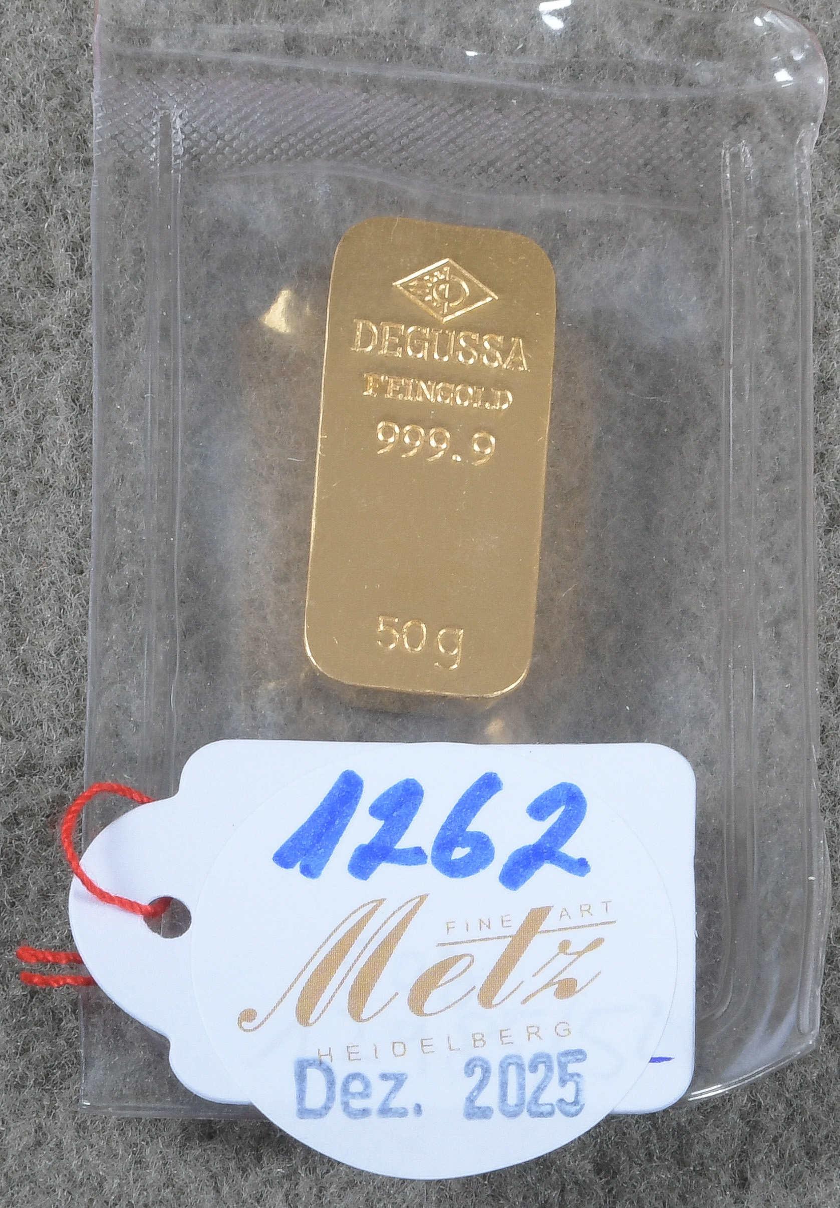 - Katalog-Nr: 1262Feingoldbarren „DEGUSSA“, 50 g.o.L.