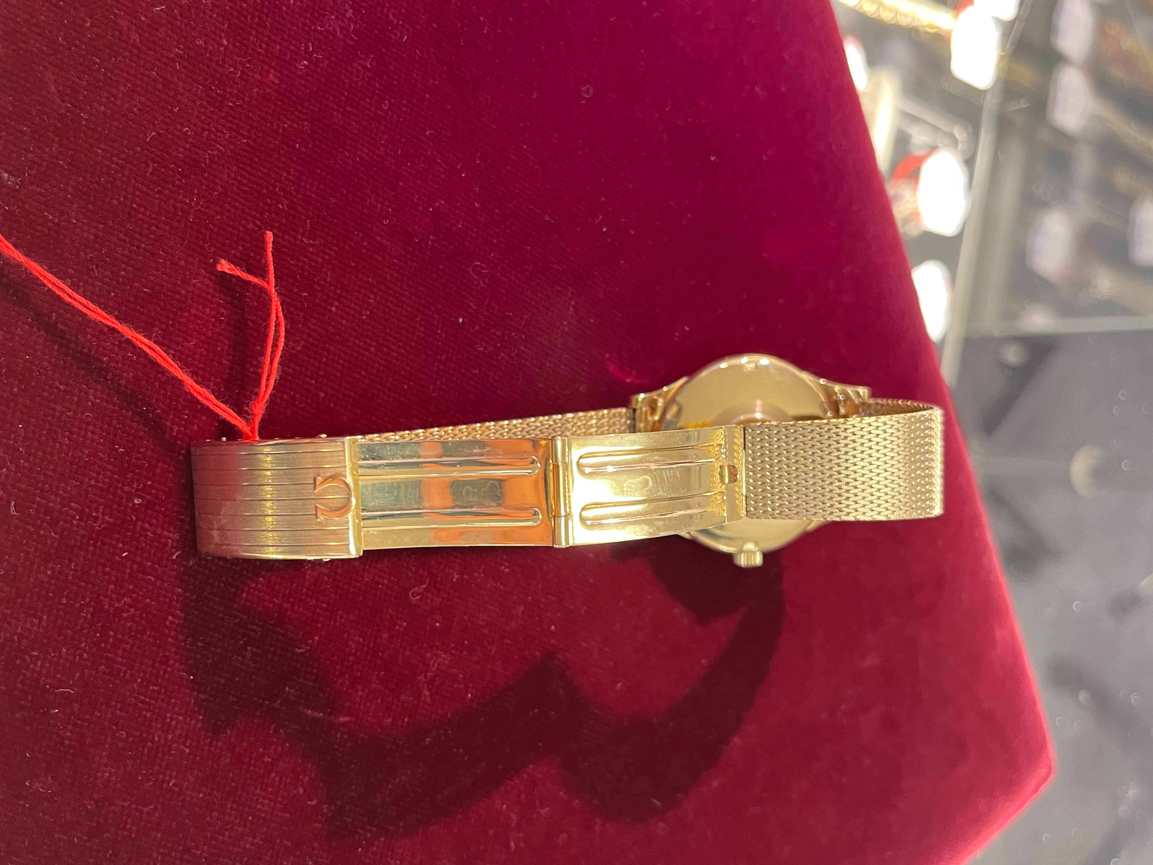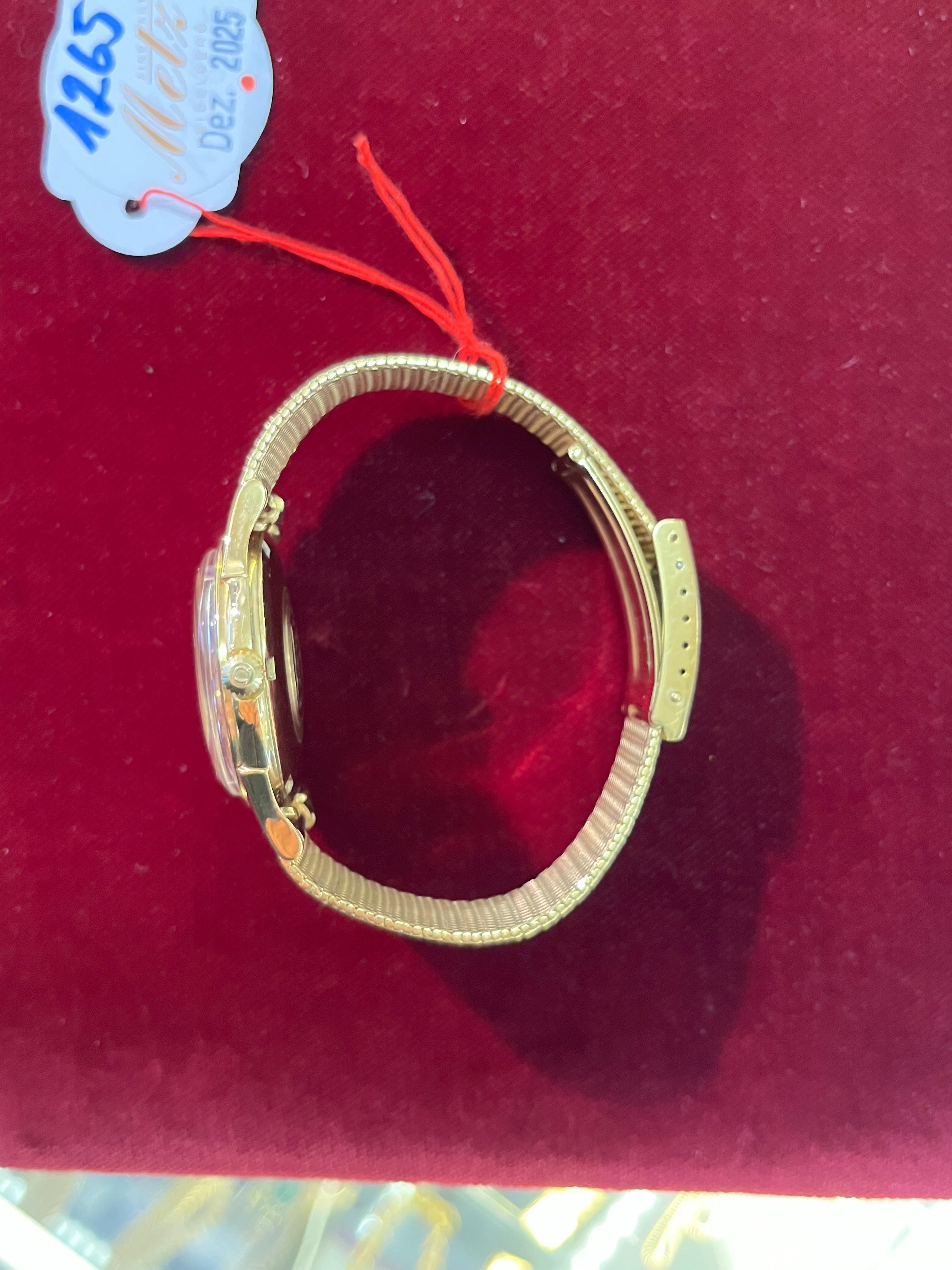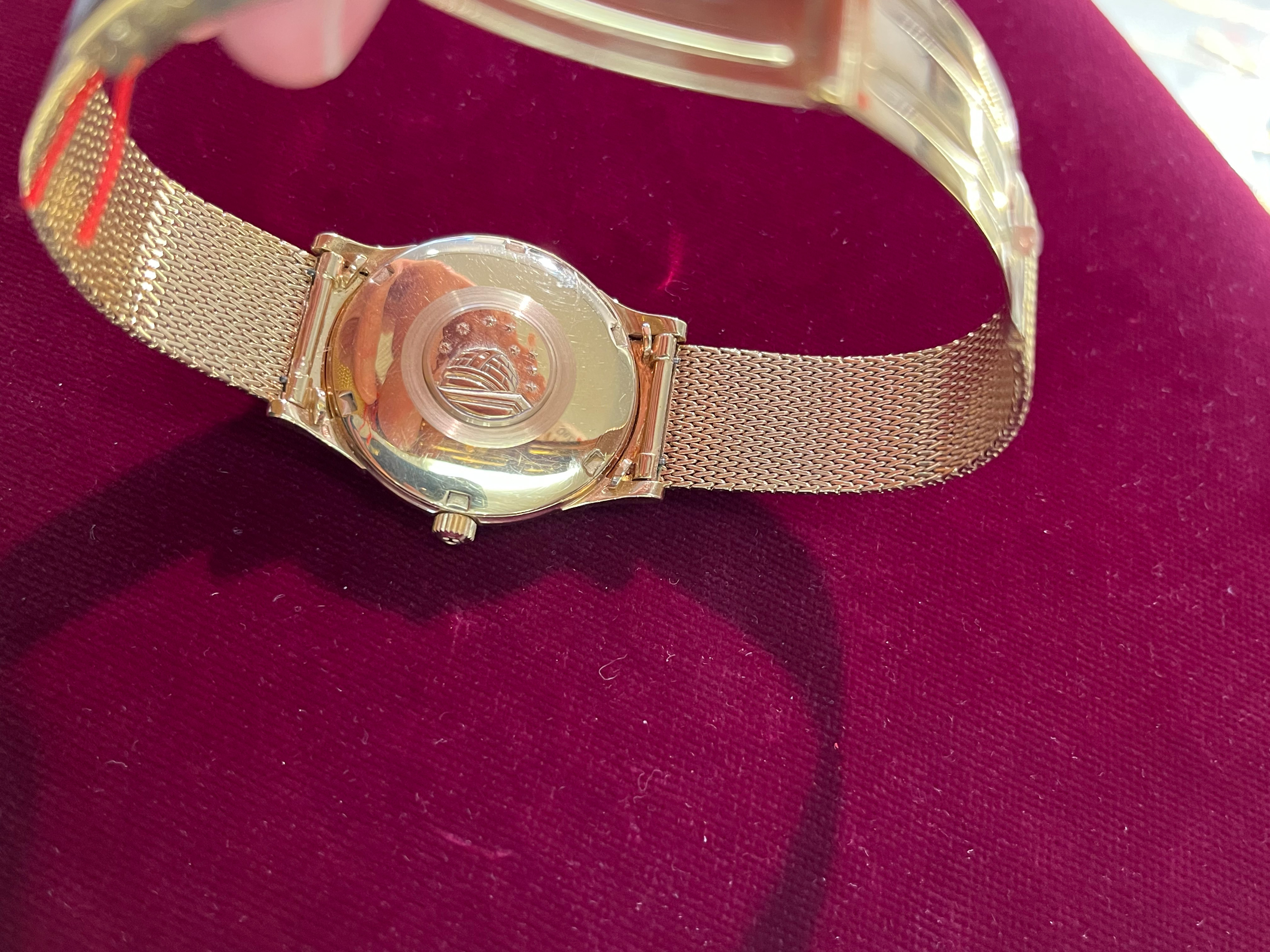 - Katalog-Nr: 1265Herrenarmbanduhr „Omega“. 18 kt Gold, mit Garantieheft in Original-Schatulle. (Funktion ungeprüft)o.L.