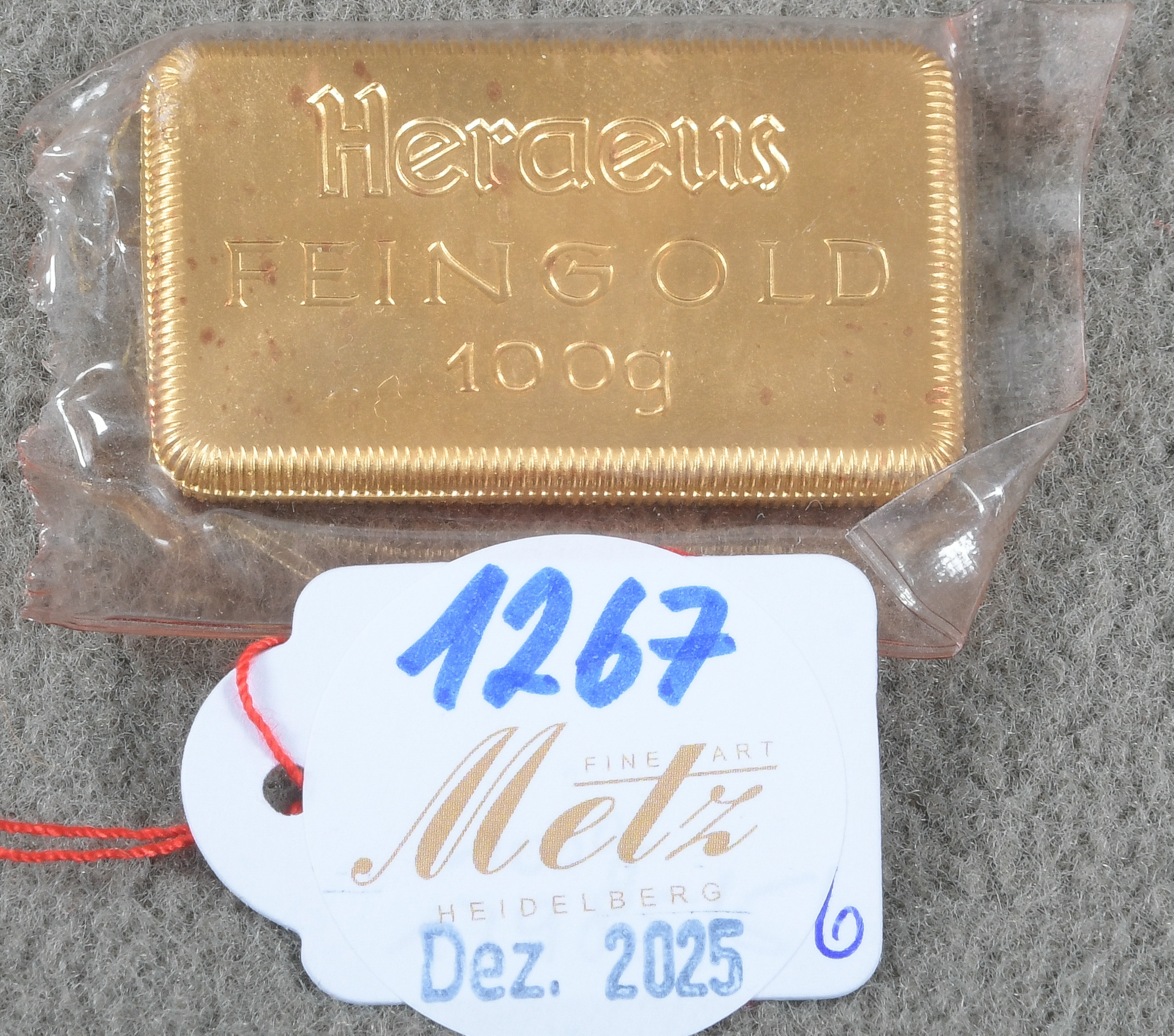 - Katalog-Nr: 1267Feingoldbarren „Heraeus“, 100 g.o.L.