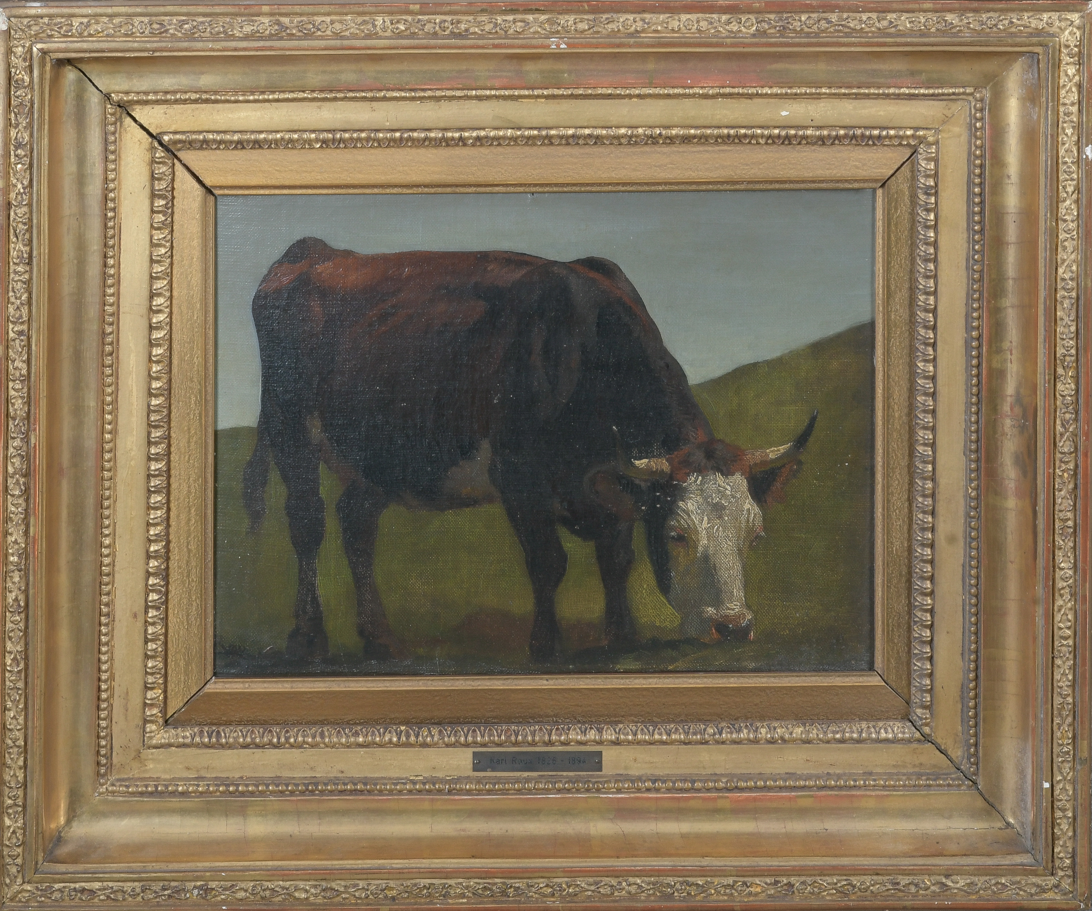 - Katalog-Nr: 1271Karl Roux (1826-1894). Rind auf der Weide. Öl/Malkarton, li./u./sign., gerahmt, 22,5 x 30,5 cm.o.L.