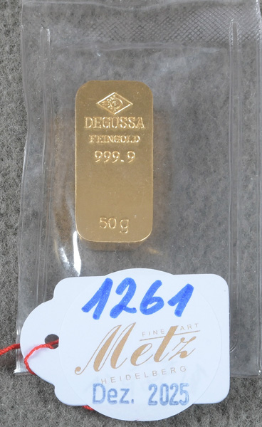 - Katalog-Nr: 1261Feingoldbarren „DEGUSSA“, 50 g.o.L.