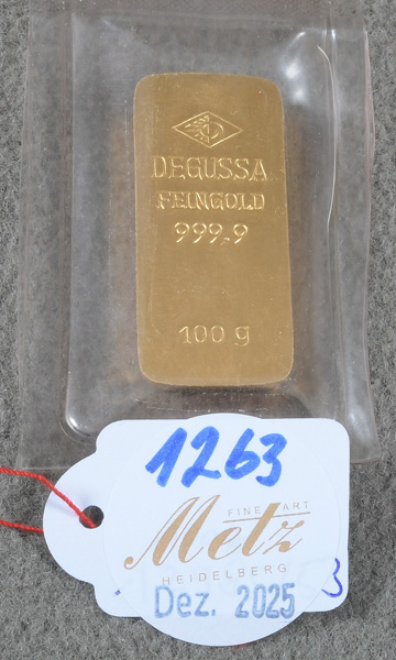 - Katalog-Nr: 1263Feingoldbarren „DEGUSSA“, 100 g.o.L.