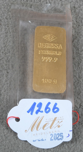 - Katalog-Nr: 1266Feingoldbarren „DEGUSSA“, 100 g.o.L.