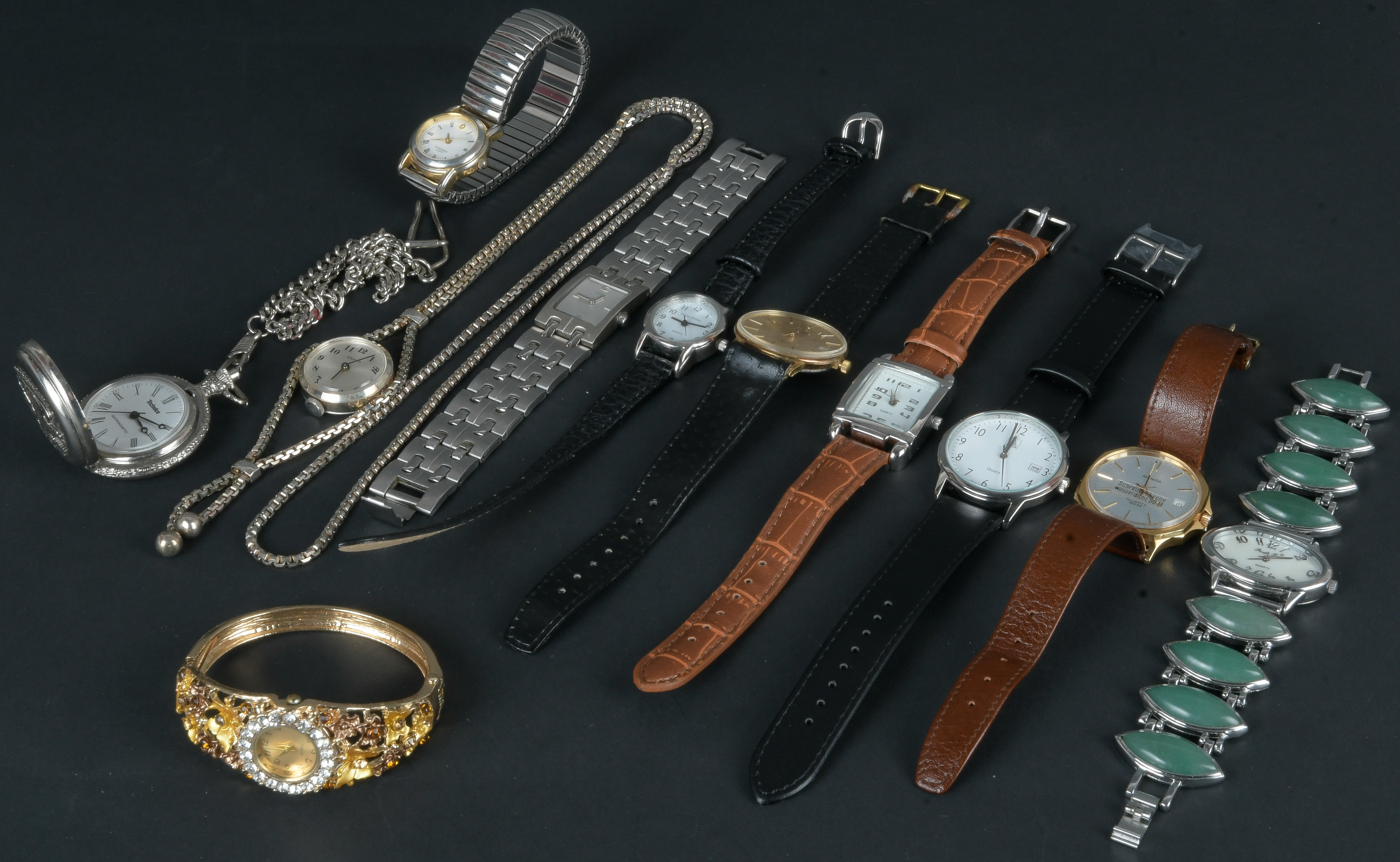 - Katalog-Nr: 1307Konvolut Damen- und Herrenarmbanduhren, u.a. „Anker“, „Avenida“, „Cito“, „Rossner“, „Pacific Time“. (Funktion ungeprüft)o.L.
