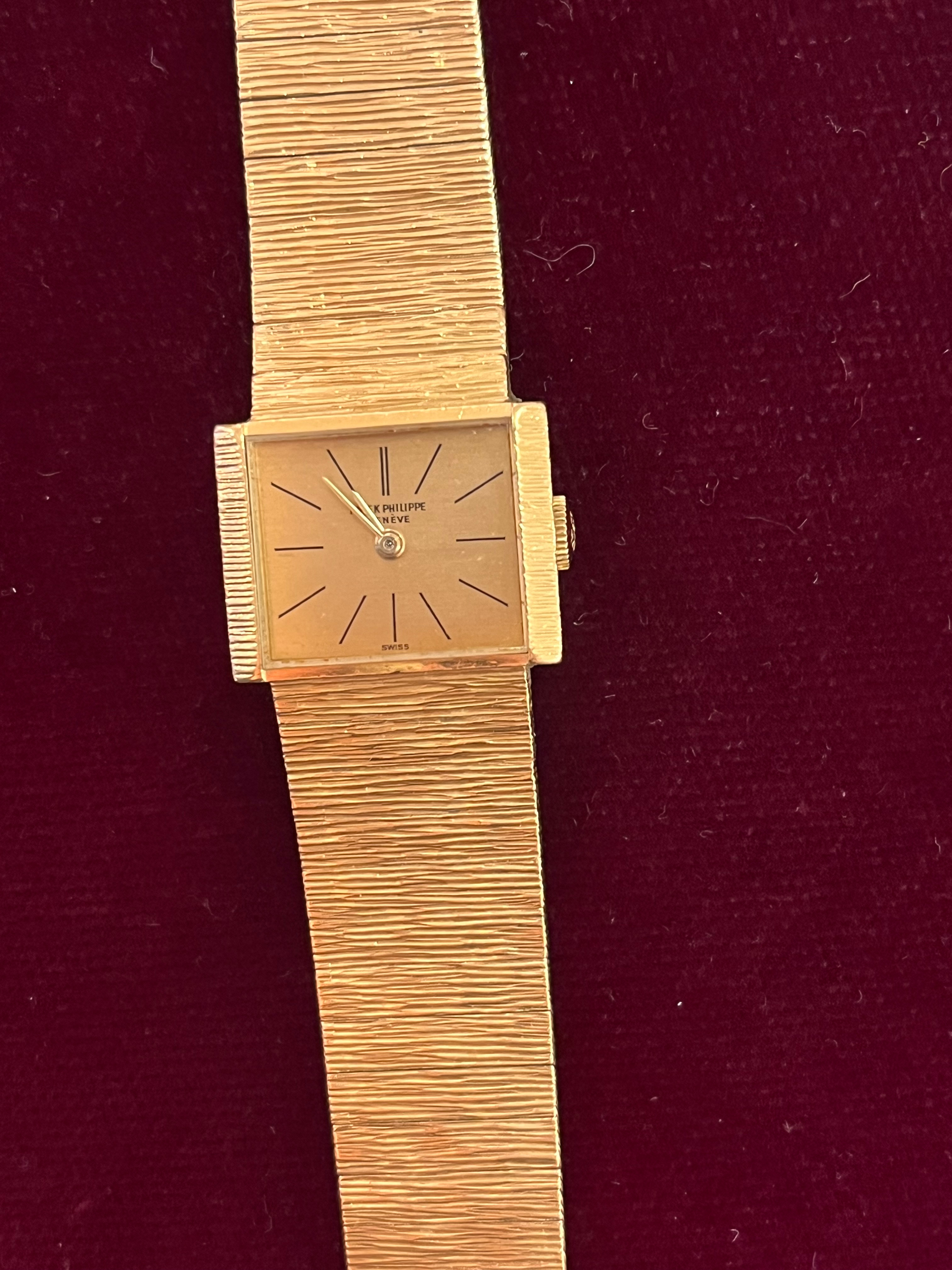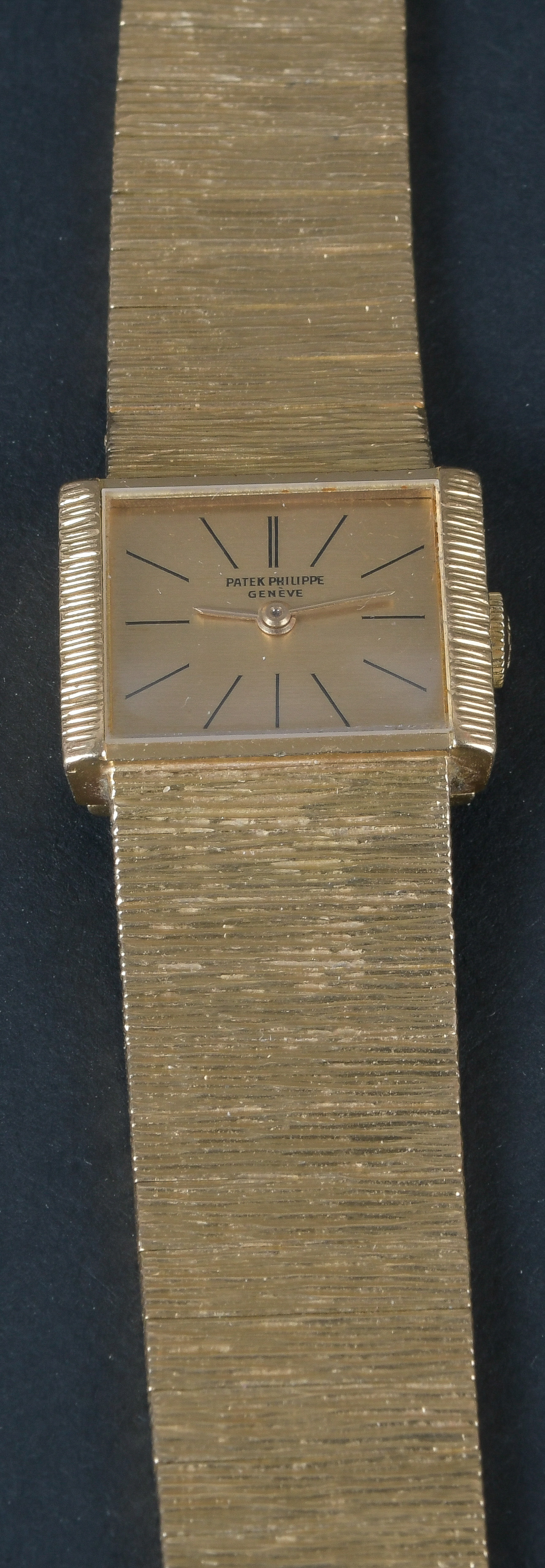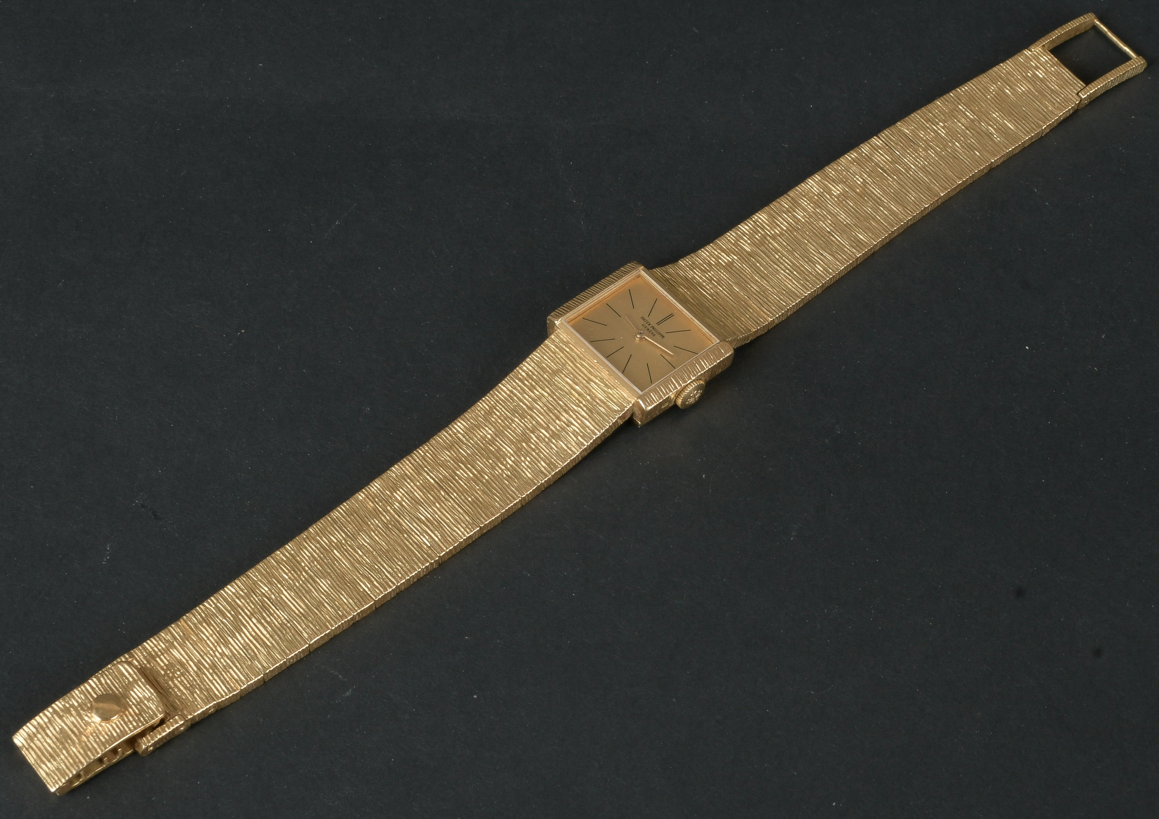 - Katalog-Nr: 1311Damenarmbanduhr „Patek Philippe“. 18 kt Gold, mit Handaufzug. (Funktion ungeprüft)o.L.