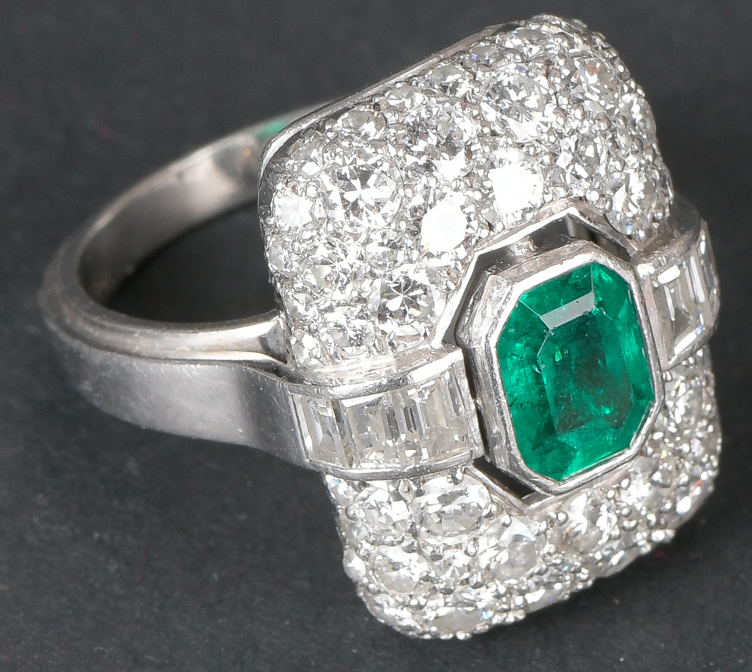 - Katalog-Nr: 1315Damenring. Platin, besetzt mit Smaragd und Brillanten, ca. 2,00 ct, Gesamtgewicht ca. 7,9 g, Ringgröße 51.o.L.