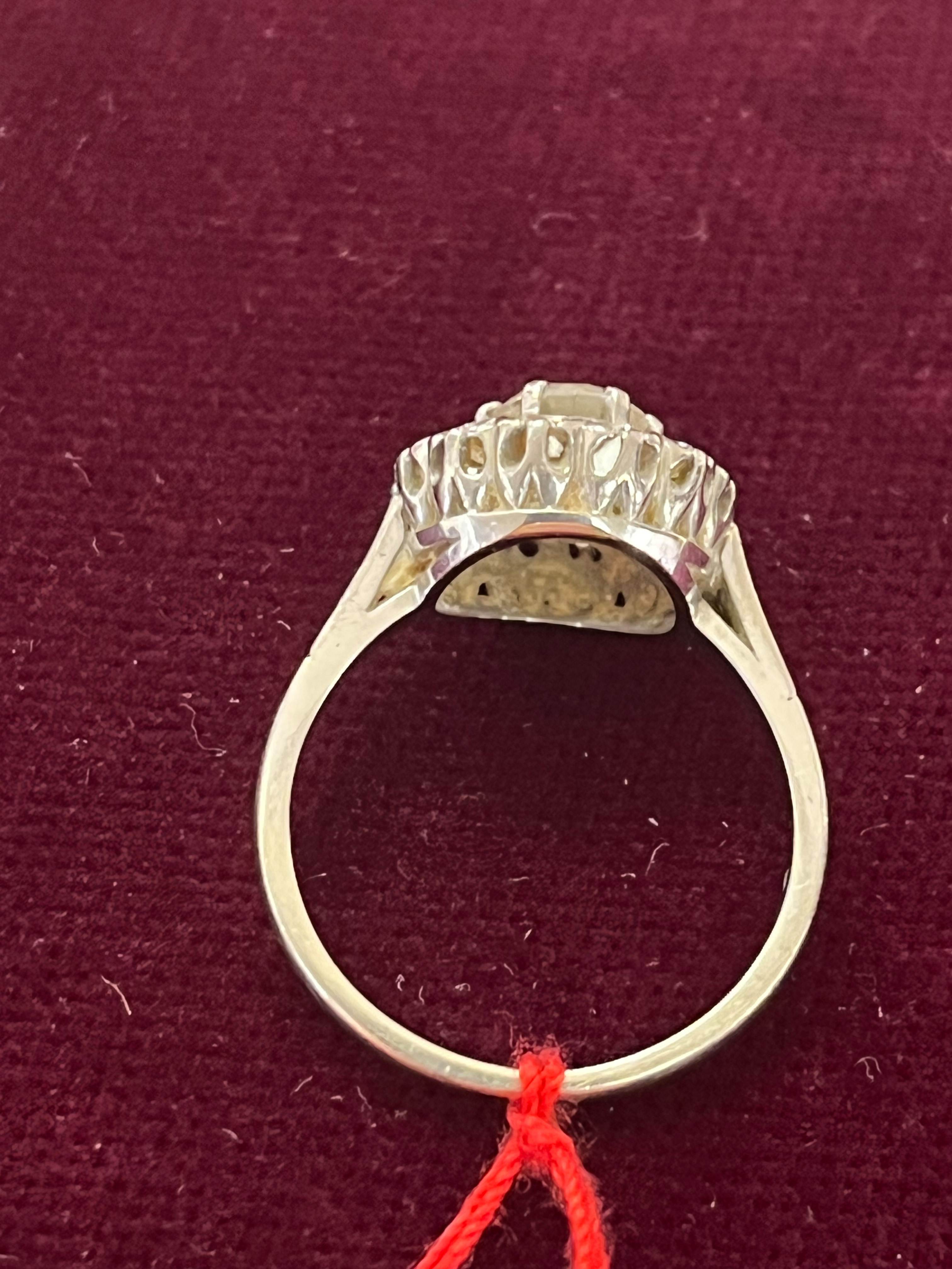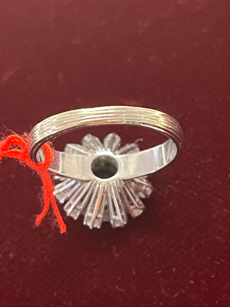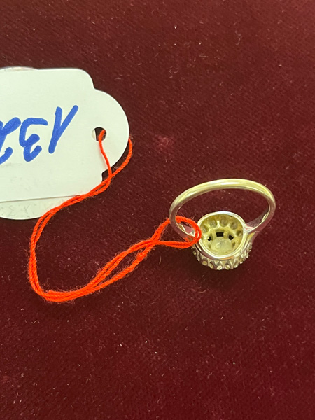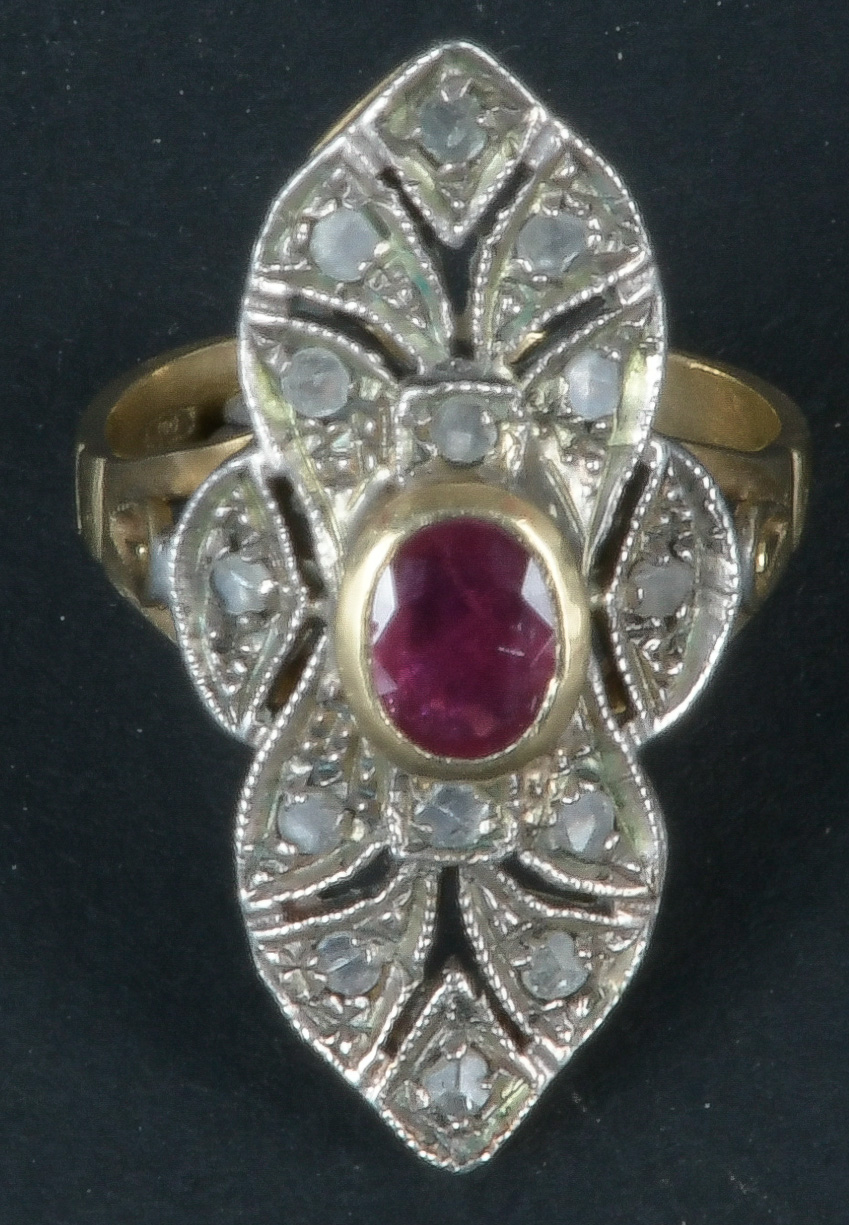 - Katalog-Nr: 1316Damenring. 18 kt Gold / Silber, besetzt mit Diamantrosen und Rubin, Ringgröße 54.o.L.