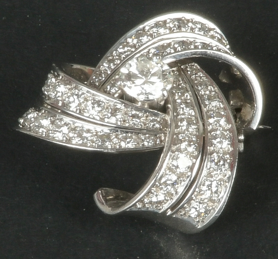 - Katalog-Nr: 1317Brosche. 18 kt Gold, besetzt mit Brillanten, ca. 1,50 ct, Gesamtgewicht ca. 6,00 g.o.L.