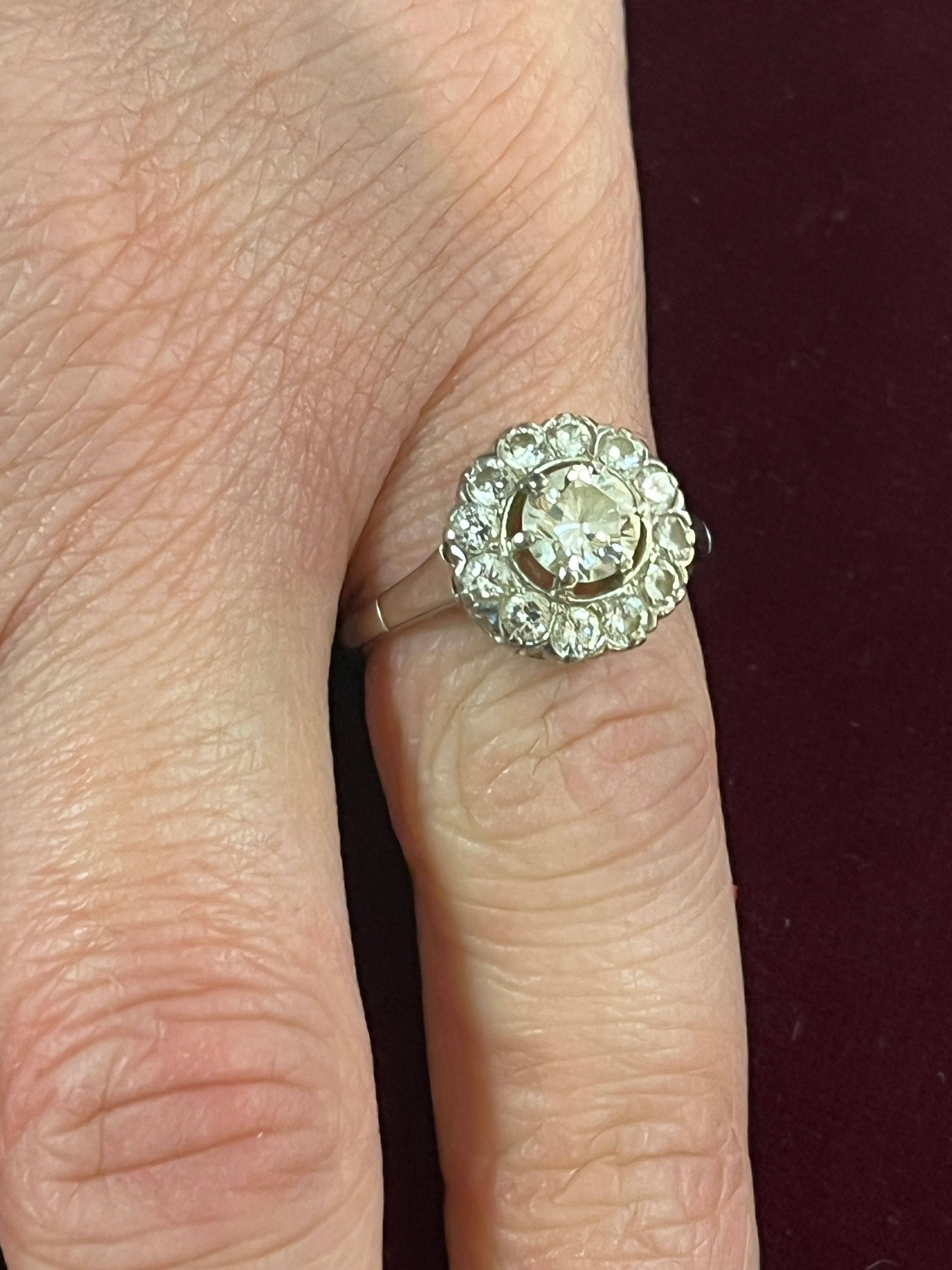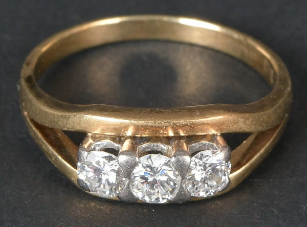 - Katalog-Nr: 1319Damenring. 14 kt Gold, besetzt mit Brillanten, ca. 0,60 ct, Gesamtgewicht ca. 4,70 g, Ringgröße 58.o.L.