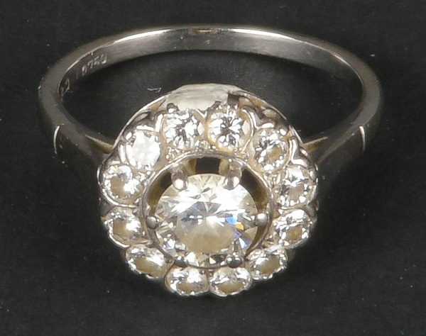 - Katalog-Nr: 1321Damenring. 18 kt Gold, besetzt mit Brillanten, ca. 1,40 ct, Gesamtgewicht ca. 4,60 g, Ringgröße 55.o.L.