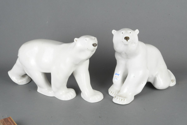 - Katalog-Nr: 1448Zwei Eisbären. Russland 20. Jh. Porzellan, sparsam bunt bemalt; an der Pfote gemarkt, H=24,2 / 26 cm.o.L.
