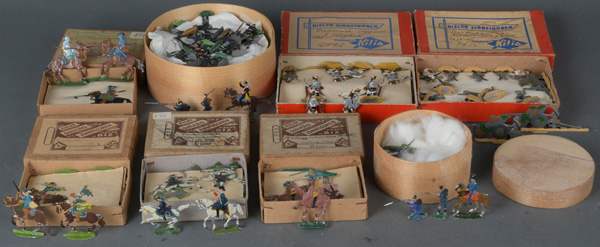 - Katalog-Nr: 1450Konvolut Zinnsoldaten, teilw. in Original-Karton „Kieler Qualitätszinnfiguren“, u.a. beschriftet „Schweden“, „Kaiserliche Lanzerer“, „Preußen“, „Husaren“ und „Frankreich“.o.L.