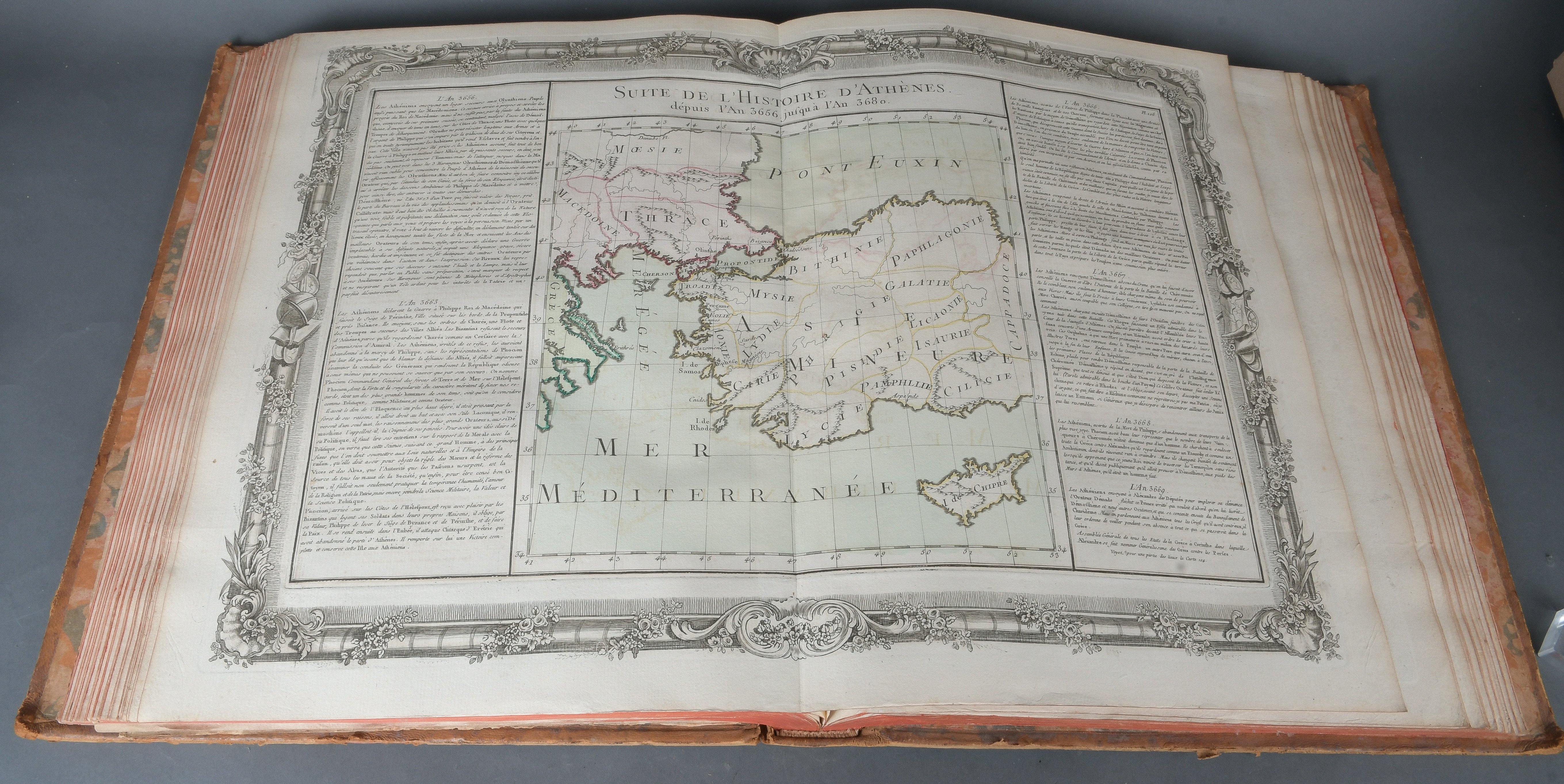- Katalog-Nr: 1478„ATLAS HISTORIQUE ET GÉOGRAPHIQUE DEDIÉ A Monsieur le Président HÉNAULT PAR M BUYDE MORNAS, Géographe de Monseigneur le DUC DE BERRI“, Ganzldr.-Bd., Paris 1762.o.L.