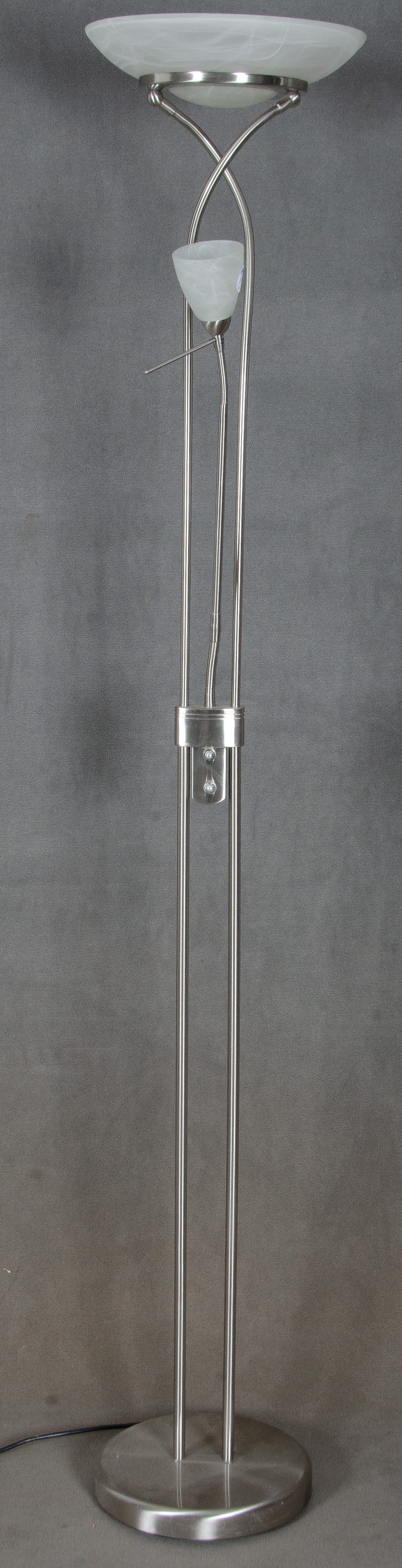 - Katalog-Nr: 1494Hohe Stehlampe. Italien 20. Jh. Chrom, poliert, mit Leuchten, H=175 cm. (Funktion ungeprüft)o.L.