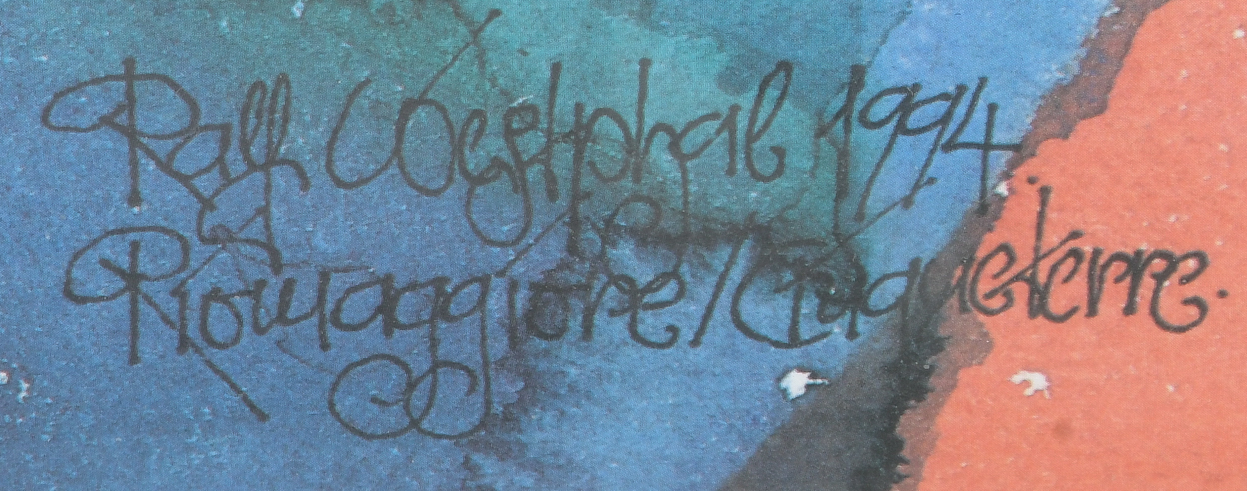- Katalog-Nr: 152Ralf Westphal (1934-2014). „Riomaggiore Cinqueterre“. Aquarell/Papier, re./u./sign./dat 1994; dazu Maler des 20. Jhs. Hafenszene und Parklandschaft, eines dat. (19)96, mit Passepartout hi./Gl. gerahmt, 40 x 53 bis 57 x 77 cm.o.L.