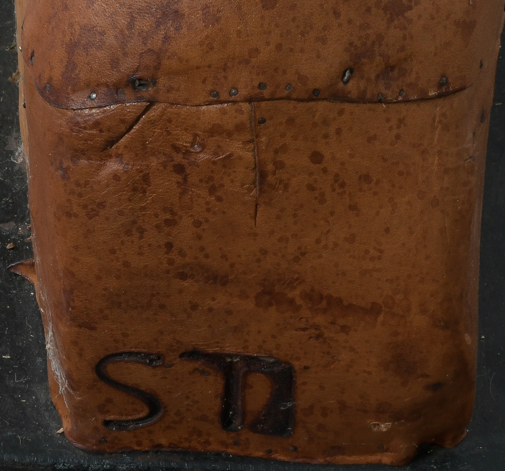 - Katalog-Nr: 154Deutscher Bildhauer des 20. Jhs. Große abstrakte Plastik. Massivholz, geschnitzt, teilw. mit Lederbespannung, seitl. monogr./dat. „S.N. (19)95“, H=178 cm.o.L.