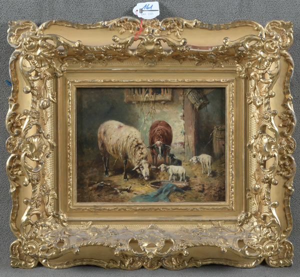 - Katalog-Nr: 161Friedrich Otto Gebler (1838-1917). Im Schafstall. Öl/Lw., re./u./sign., gerahmt, 18 x 24 cm.o.L.
