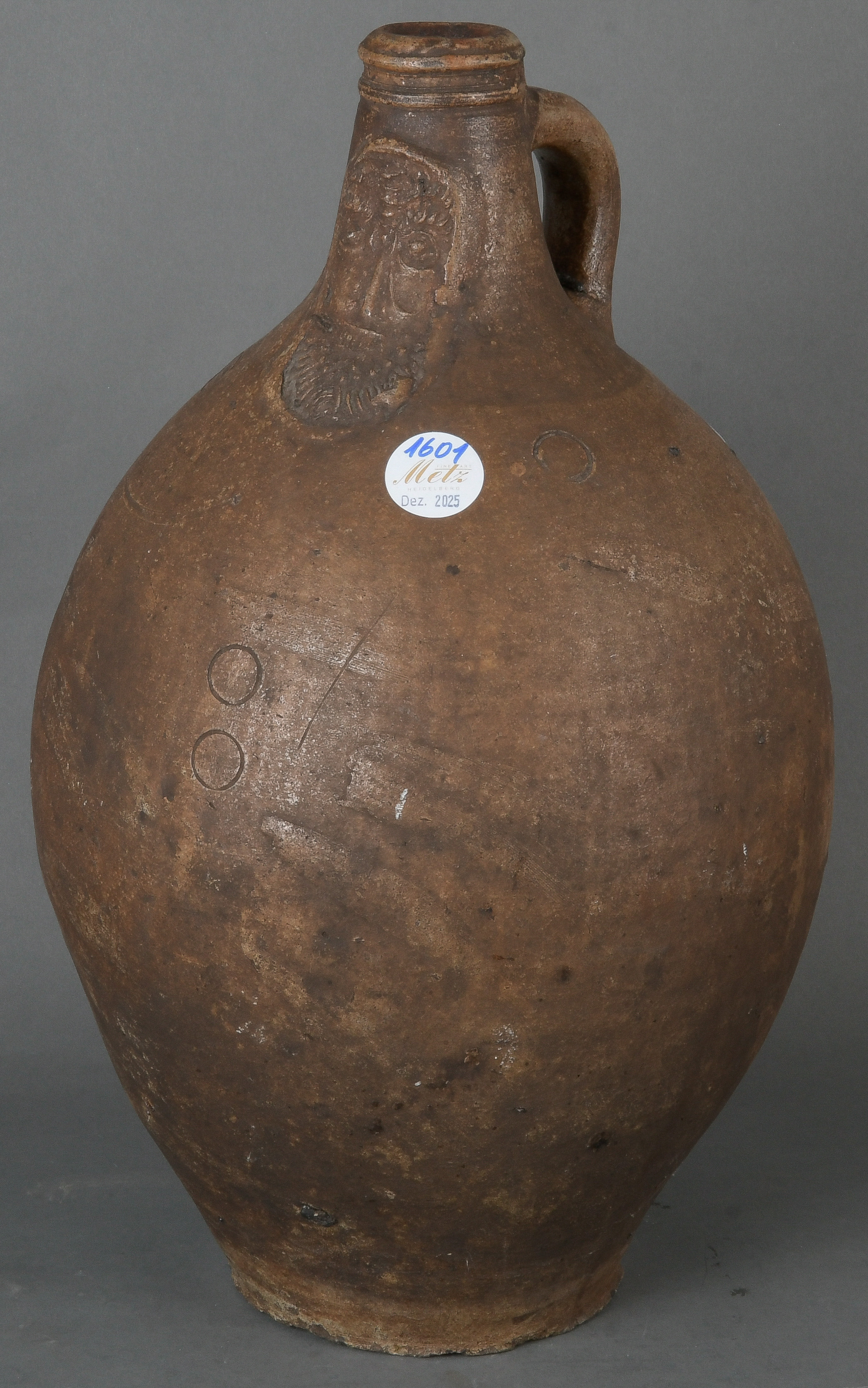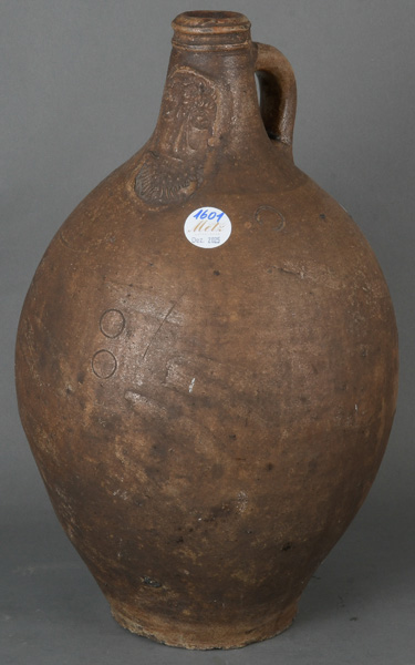 - Katalog-Nr: 1601Bartmannskrug. Frechen 17. Jh. Steinzeug, H=41 cm. (min. best.)o.L.