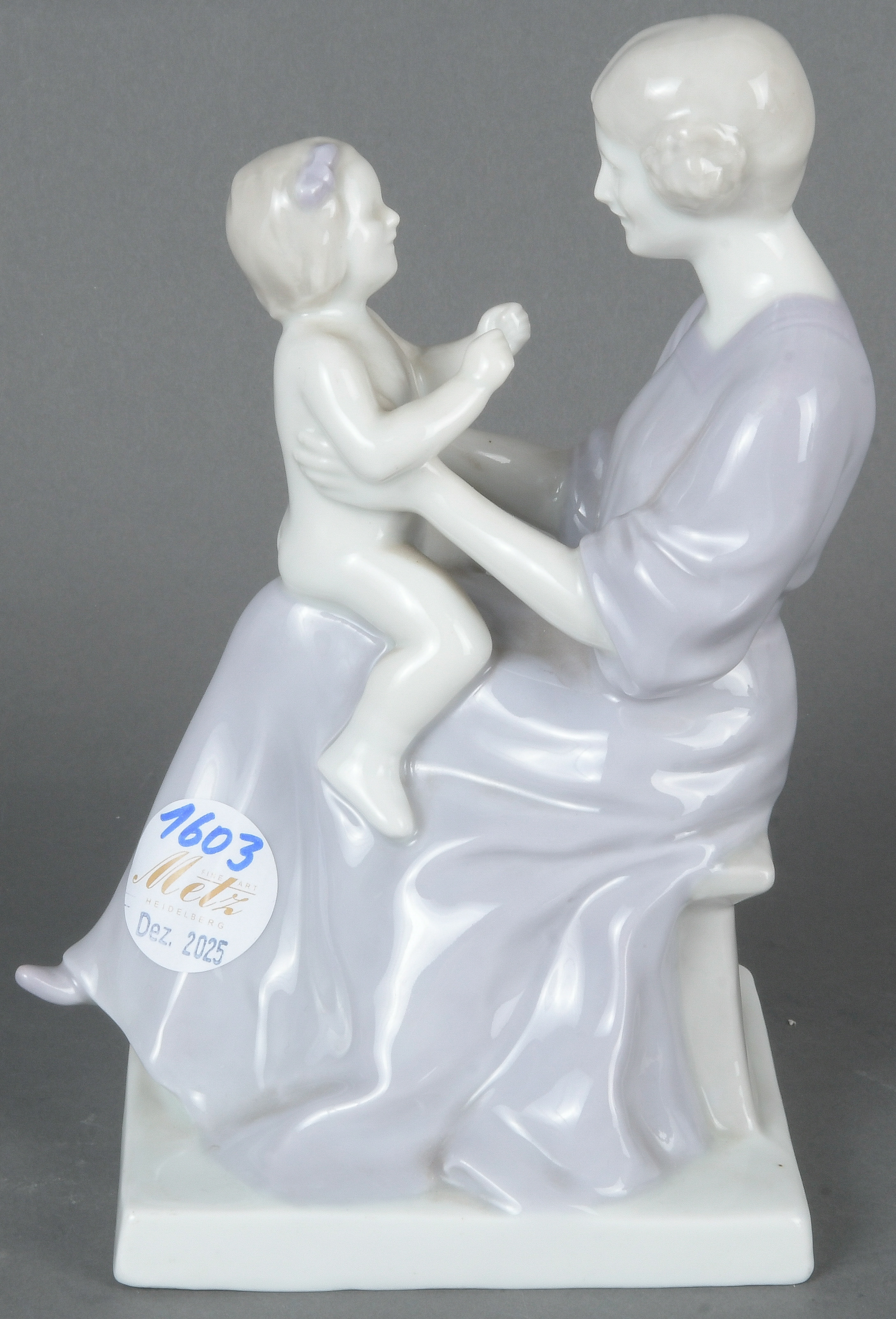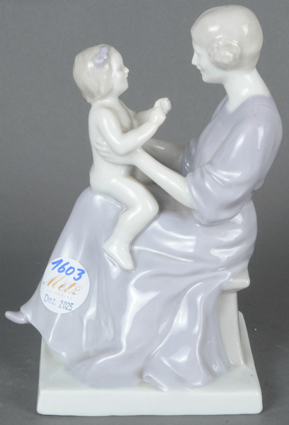 - Katalog-Nr: 1603Mutter mit Kind. Heubach 20. Jh. Porzellan, bunt bemalt; am Boden gemarkt, Pressziffer „8290“, Entwurf und sign. Tilly von Waldenfels, H=20 cm.o.L.