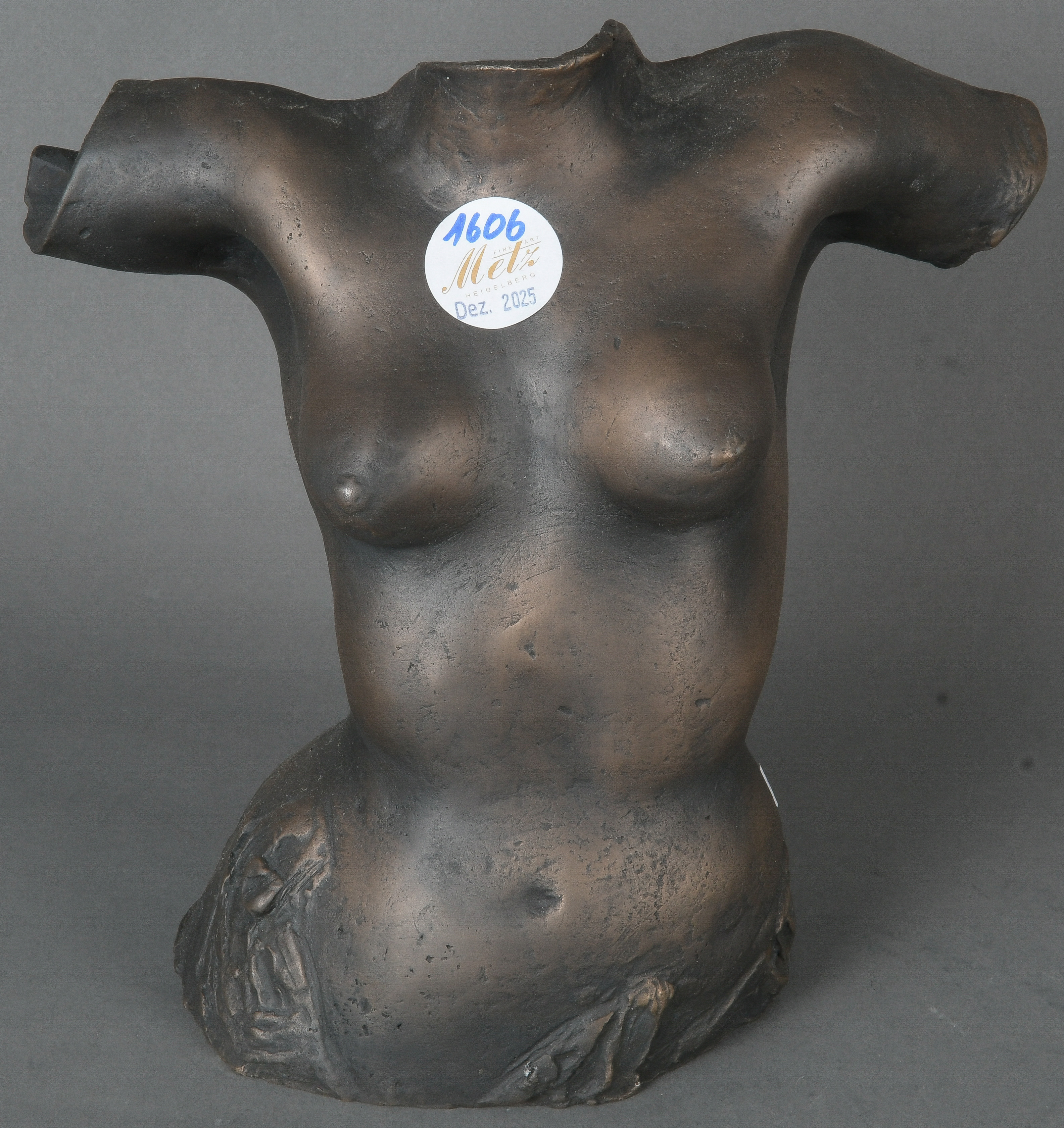 - Katalog-Nr: 1606Bildgießer des 20. Jhs. Frauentorso. Bronze, verso unleserlich sign. und monogr. „SB“, H=23 cm.o.L.