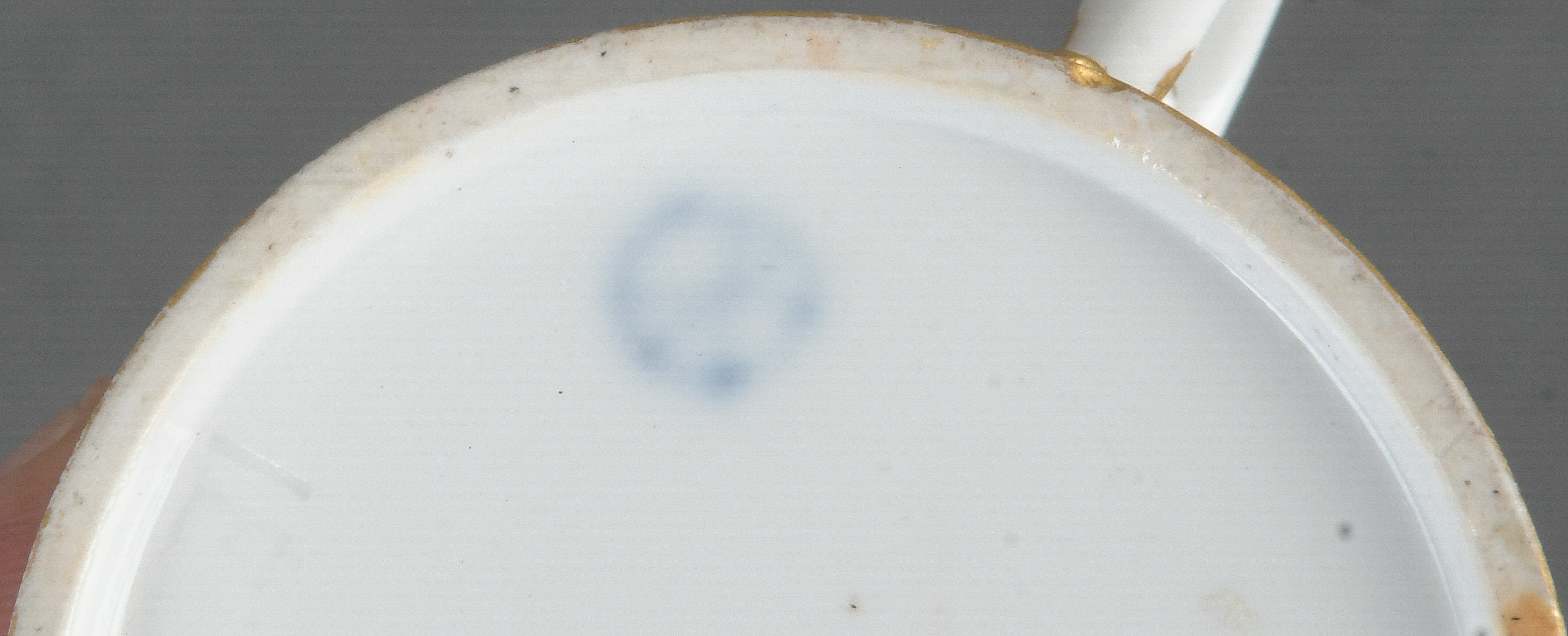 - Katalog-Nr: 1618Drei Tassen. Höchst 1785. Porzellan, bunt bemalt; am Boden unterglasurblaue Radmarke. Provenienz: Sammlung Bruno Sandner, Hofheim.o.L.