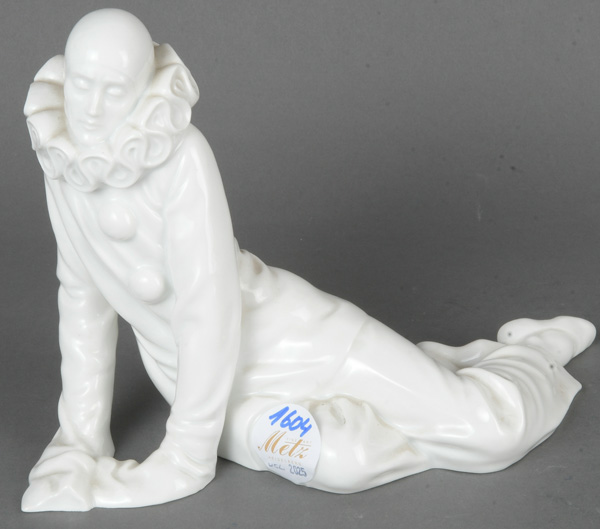 - Katalog-Nr: 1604Pierrot. Rosenthal 20. Jh. Porzellan, weiß glasiert, am Boden gemarkt, Formnummer „251“, Entwurf und sign. D.(orothea) Charol, H=16,5 cm.o.L.