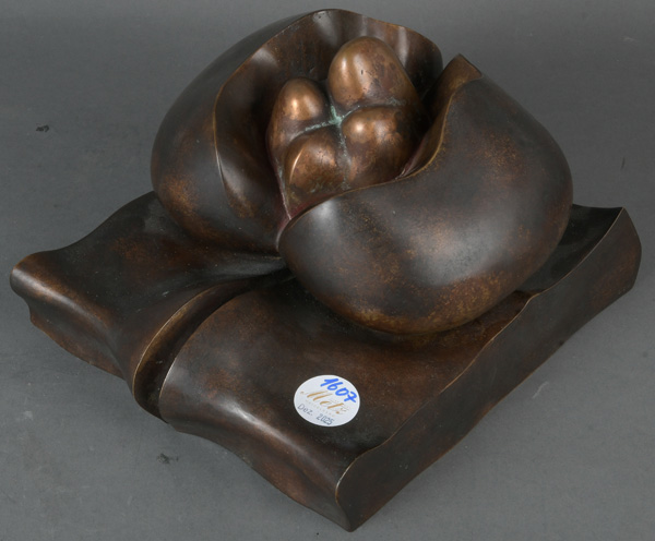 - Katalog-Nr: 1607Maximilian Hutlett (1933-2018). Abstrakte Skulptur. Bronze, seitl. sign. und beschriftet „Guss: Zimmer-Celle“, H=13 cm, B=22 cm, T=24,5 cm.o.L.