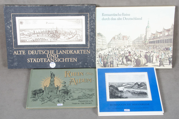 - Katalog-Nr: 1679Rolf Müller (Hrsg.), „Romantische Reise durch das alte Deutschland“, Ldr.-Bd. in Schuber, Hamburg 1969; Merian-Kassette, „Alte deutsche Landkarten und Städteansichten“, Expl. AX 350; „Romantische Rheinreise“ mit 114 Faksimile-Stichen, dritte Aufl. Wuppertal 1975.o.L.