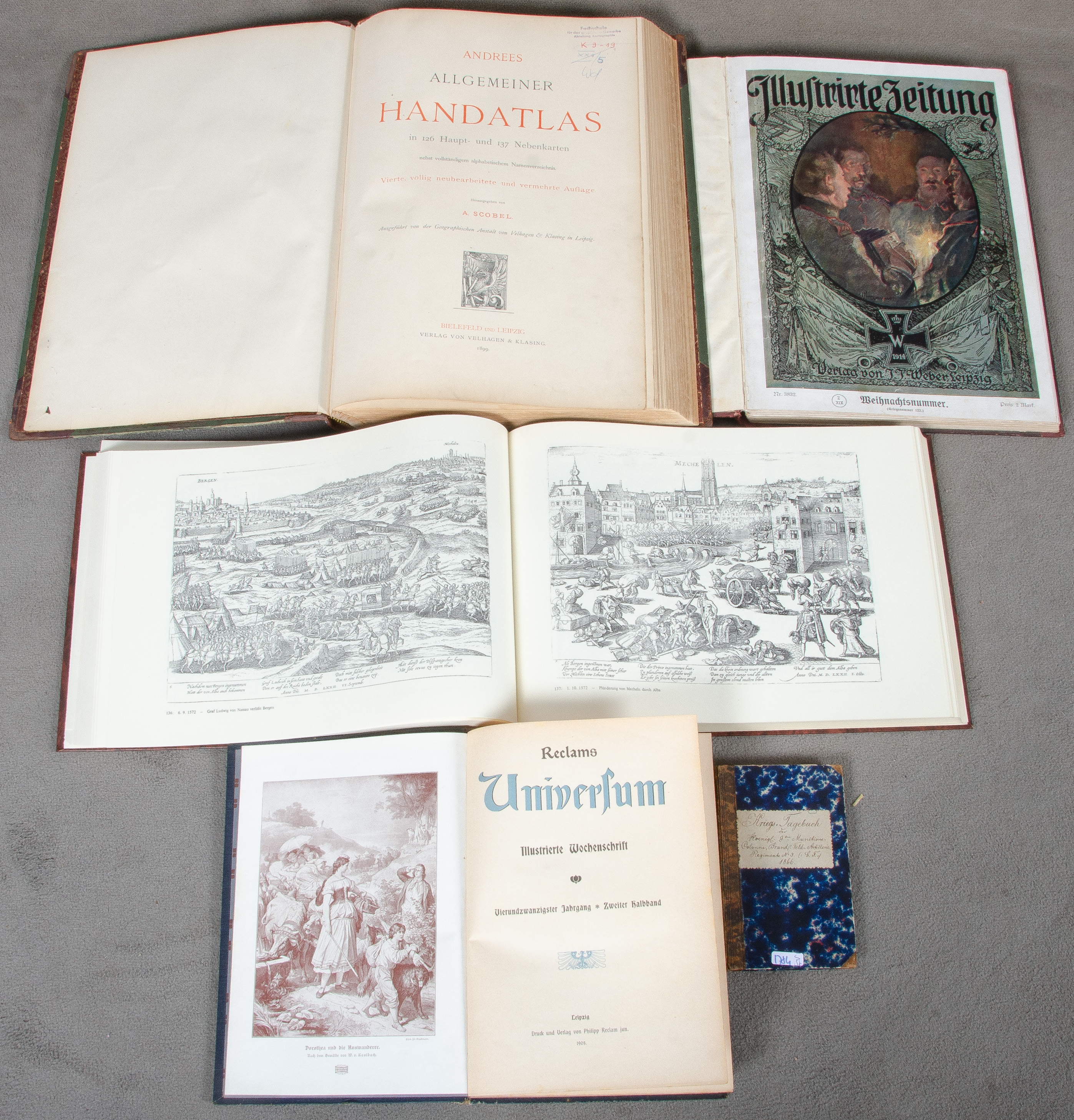- Katalog-Nr: 1784Konvolut Literatur, u.a. Kriegstagebuch von 1866; A. Scobel (Hrsg), „Andrees Handatlas“, Halbldr., Bielefeld / Leipzig 1899; „Illustrierte Zeitung 1916“.o.L.