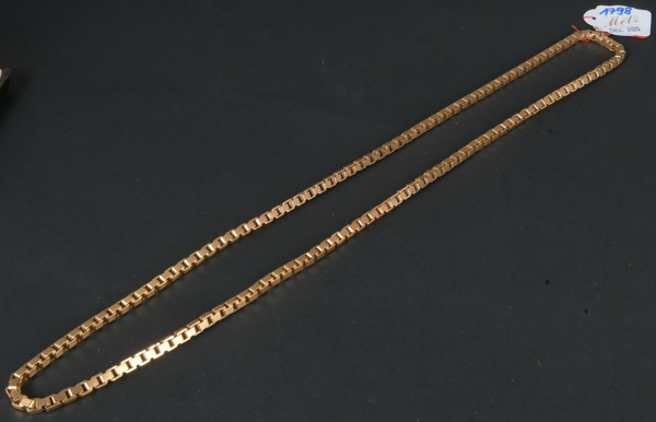 - Katalog-Nr: 1798Gliederhalskette. 18 kt Gold, ca. 141,84 g, L=74 cm, mit Etui von Juwelier Braun, Mannheim.o.L.