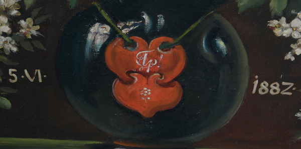 - Katalog-Nr: 1861Maler des 19./20. Jhs. Blumenstrauß mit weißen Rosen und Tulpen in Vase. Öl/Lw., li./u. unleserlich sign./dat. 1882, gerahmt, 60,5 x 46,5 cm.o.L.