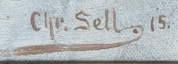 - Katalog-Nr: 1871Christian Sell II (1856-1925). Soldaten zu Fuß und zu Pferd mit Planwagen in Winterlandschaft. Öl/Lw., re./u./sign./dat. (19)15, gerahmt, 32,5 x 48,5 cm.o.L.