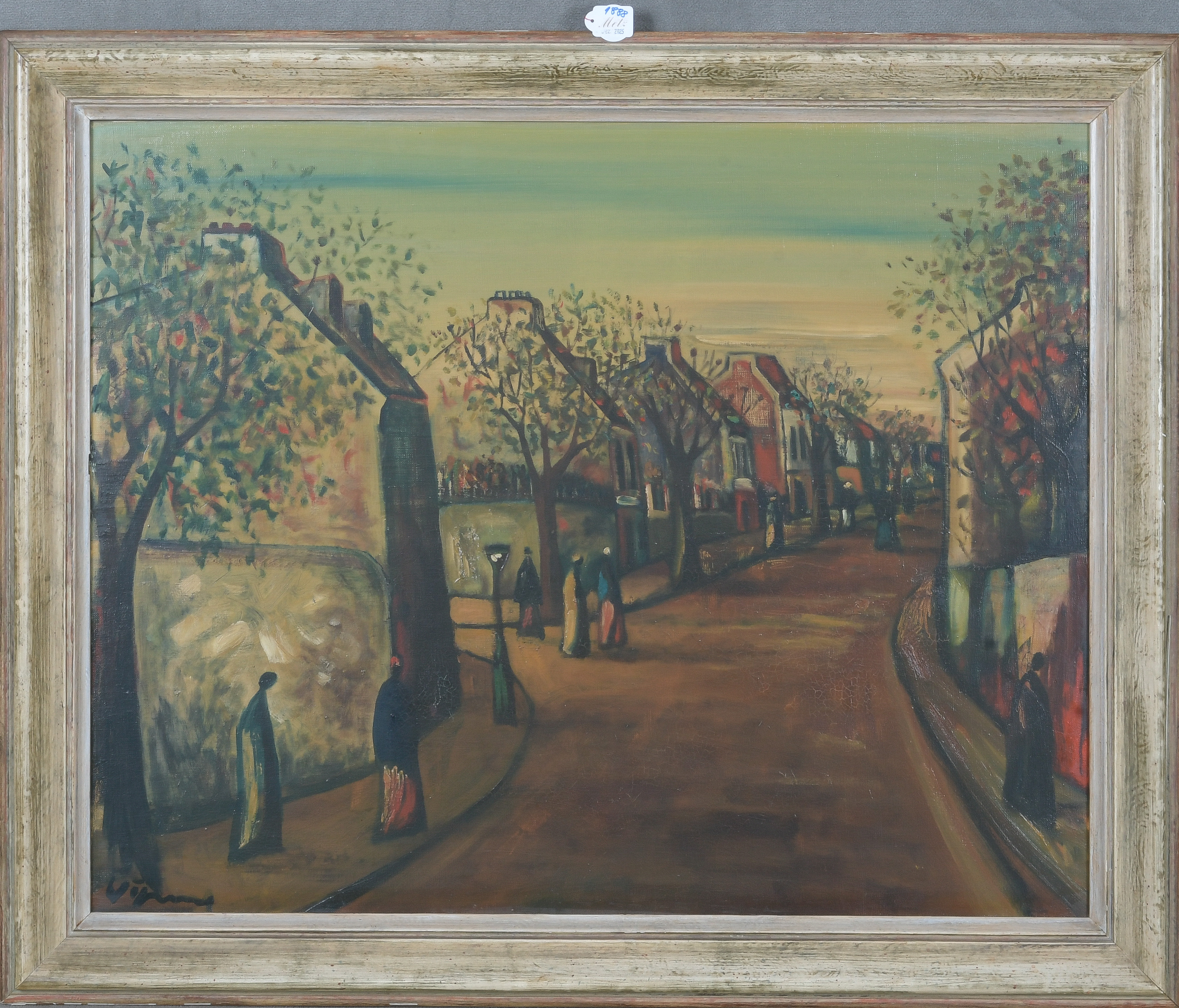 - Katalog-Nr: 1888Sylvain Vigny (1903-1970). Straßenszene mit Personenstaffage. Öl/Lw., li./u./sign., gerahmt, 65 x 80 cm.o.L.
