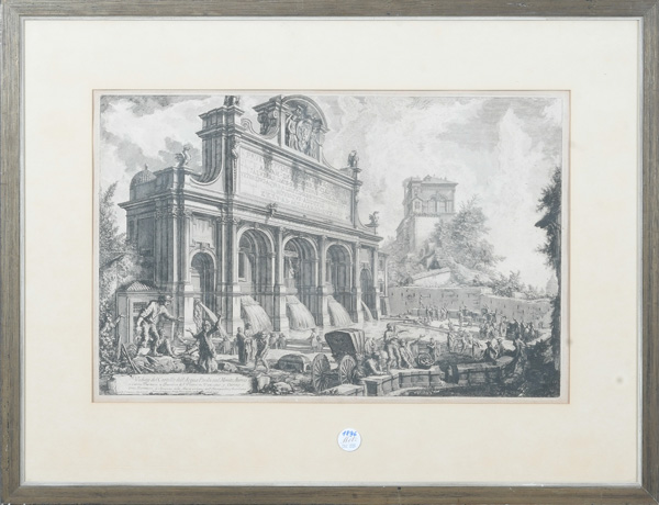 - Katalog-Nr: 1896Giovanni Battista Piranesi (1720-1778). „Veduta di Roma“. Kupferstich, li./u./sign., mit Passepartout hi./Gl. gerahmt, 40 x 61 cm.o.L.