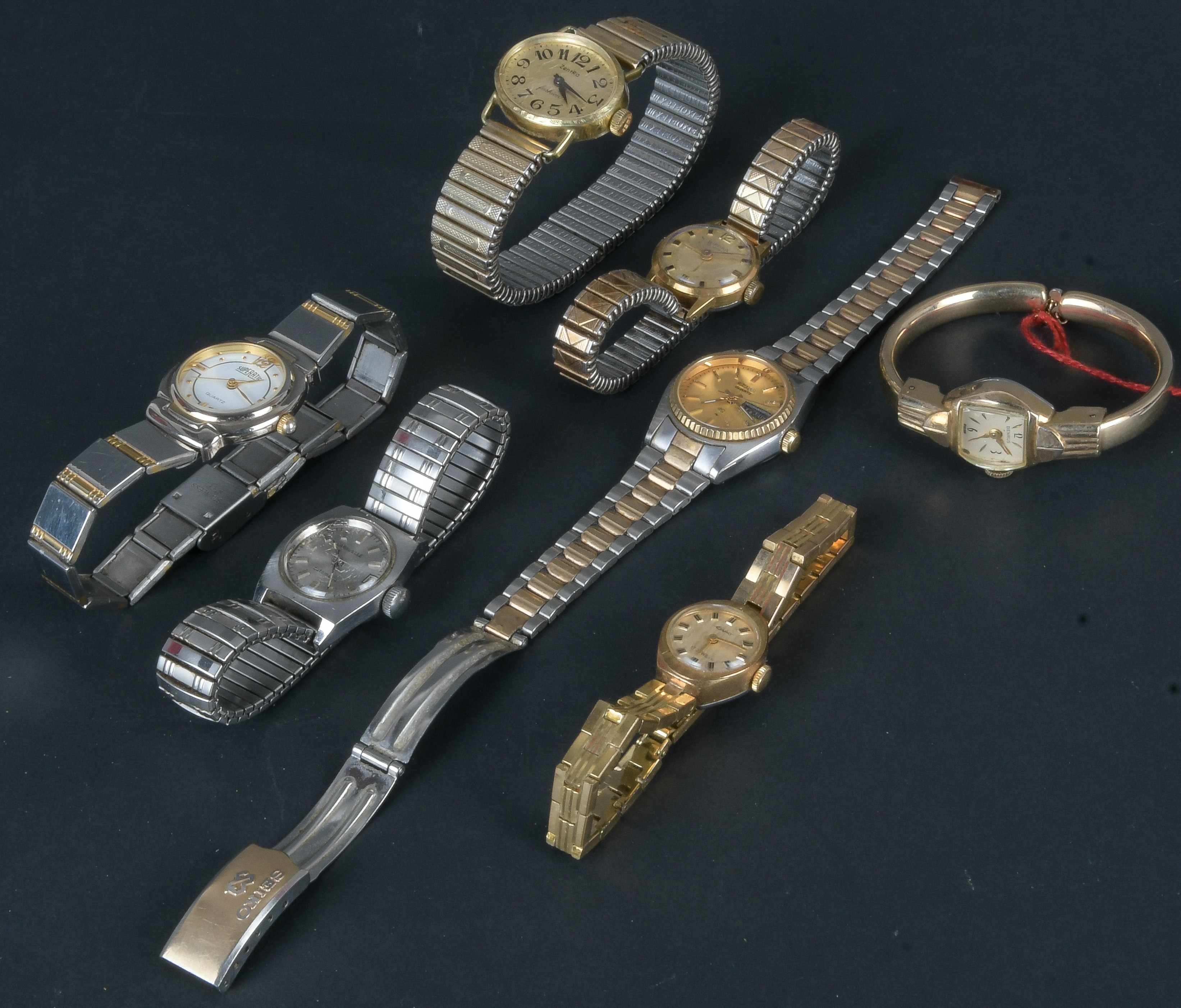 - Katalog-Nr: 1907Sieben Armbanduhren, u.a. „Bifora“, „Caravelle“, „Eppo“, „Seiko“ und „Zentra“. (Funktion ungeprüft)o.L.