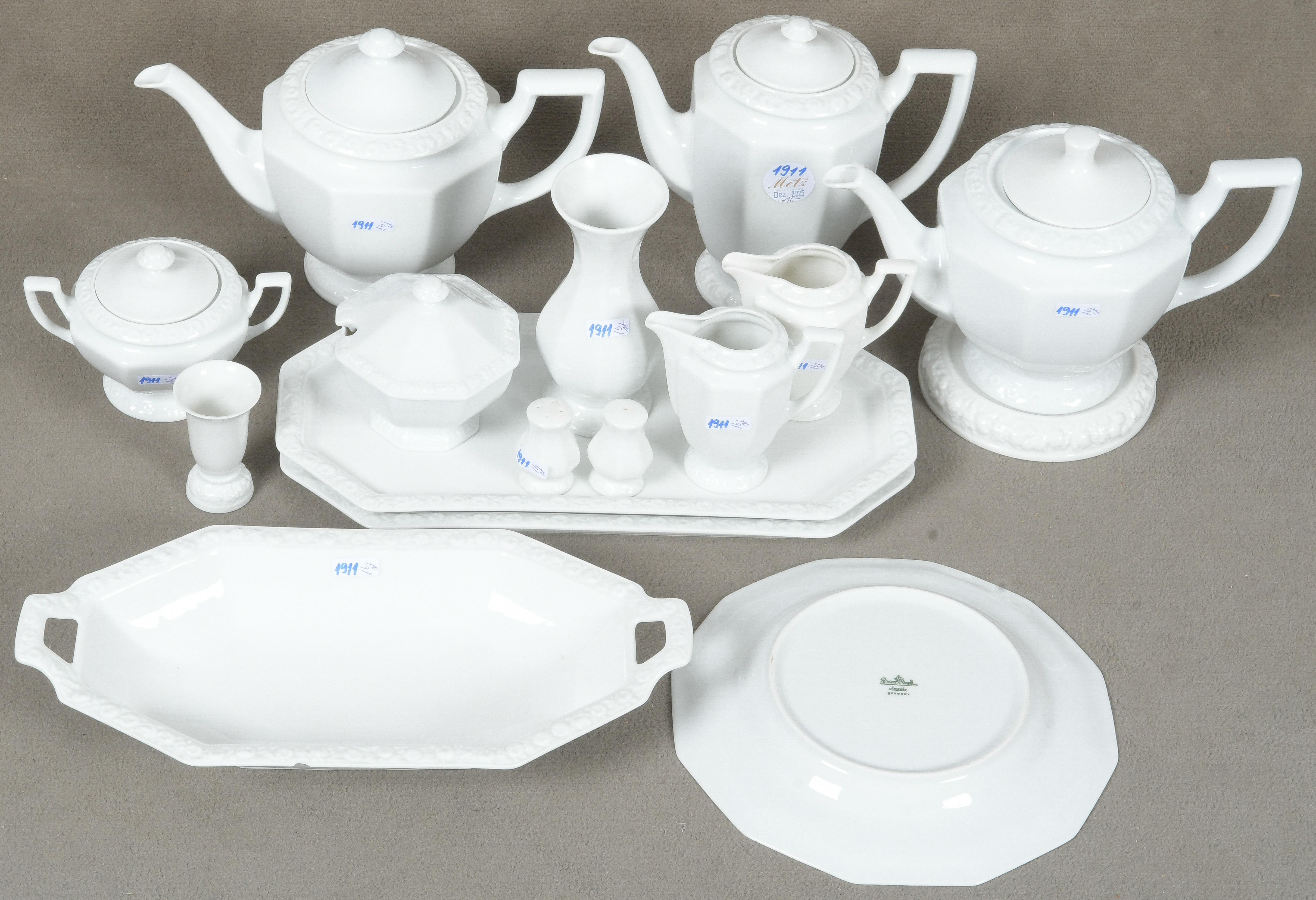 - Katalog-Nr: 191116-tlgs. Service „Maria Weiß“. Rosenthal 20. Jh. Porzellan, weiß glasiert; am Boden gemarkt, H=5,5 bis 20,5 cm.o.L.